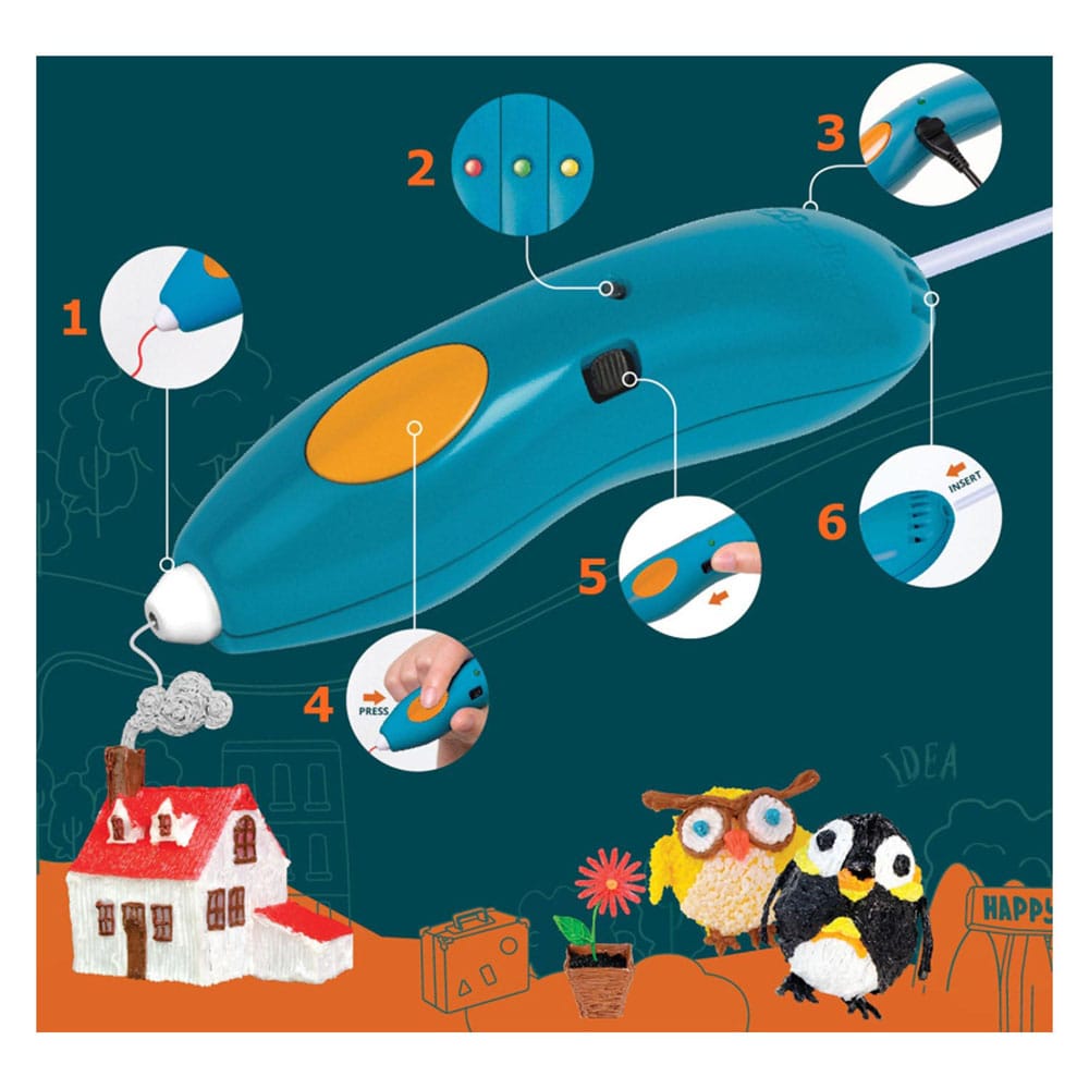 The 3Doodler Start+ is a special pen that allows you to draw in 3D. Bring your ideas to life and literally draw in the air! Safe and clean: BPA-free plastic The 3D pen uses BPA-free plastic, which is not only safe but also cools and hardens quickly. You can literally draw in the air without worrying about hot parts or unpleasant resins. Contents: - 1 x 3Doodler Start+ printing pen - 72 x strips of 3Doodler Start+ refill packs (8 colours) - 1 x 3Doodler Start manual - 1 x Micro USB charging cable Features: - Biodegradable 3Doodler Start Plastic, made entirely from BPA-free, non-toxic materials - Plastic liquefies and hardens quickly - Pen nozzle and plastic can be touched without risk of burns - Running time: approx. 45 min. to 1 hour