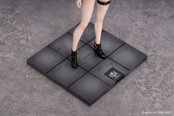 From the A-Z: series illustrated by neco, the original character [D] debuts as a 1/7 scale figure in a brand-new 'full dress'look! With her combat saber slung at the waist, D stares with a piercing gaze. Her red coat is finished with multi-layered gradient paint, while the deep V-neck shirt reveals a glimpse of her chest. The black bodycon miniskirt in semi-transparent material subtly hints at the skin beneath. A silver belt gathers the shirt, creating delicate folds. The transparent half-sleeve on her right shoulder recreates the design of the original artwork, and accessories on different parts are accentuated with metallic paint for enhanced detail. Let the heroic [D] -full dress- shine brightly in your collection!