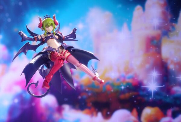"Introducing the second model in the ReACT where characters reappear with a whole new element! From the ARCANADEA series, the devilish Dears, Velretta, is back in an all-new fantasy-inspired ""dark version"" as Velretta ReACT-P. Featuring four new face parts, Velretta ReACT-P takes on a whole other persona from the original Velretta. By changing out certain parts, the model can be assembled in ""Normal Mode"" or ""Wilize Mode"" when in combat. The model is equipped with several 3mm joints, making it compatible with parts from other Kotobukiya original series. Included Items & Features: - The model can be assembled in ""Normal Mode"" or ""Wilize Mode"" by changing out certain parts. - The kit includes four different faces that have been pre-printed with tampography (Yelling, Scheming, Crying, and Panicking). - Decals are included for users to create their preferred expressions. - Both side hair strands are attached with ball joints, allowing for independent movement. - The pointed ears can be swapped with the ear parts of other Dears, including Lumitea. - The kit includes a ring part for engaging with Velretta. - The imp-like small demon wings on the back are mounted using joint parts at the base, combining an elegant, organic design with flexible articulation. - The magic circle connection part for the wings is a HEXA G-R.A.M. joint with a 3mm opening in the middle. The joint provides stability and is compatible with joints from the HEXA GEAR series. - The upper-arm armor parts are attached via 3mm diameter joints and can be attached to various locations. - The Normal Mode leg parts use pop-out joints for the knee that can't be seen from the front when the model is standing, maintaining the shape of the legs while providing a wide range of movement. - The kit includes a unique weapon that changes from an umbrella to a lance. - The skirt parts at the hip attach via 3mm joints, which allows movement without hindering the character's actions. - The tail that extends from the waist is connected by joint parts at the base, and because it has two connection points, it can take on various shapes to fit the poses of the character. - A special stand is included. - The kit includes five sets of PVC hand parts. They can hold existing weapons from the M.S.G, Frame Arms, and Frame Arms Girl series. - The 3mm connection points on each part make them compatible with existing M.S.G, Frame Arms, and Frame Arms Girl parts. - The kit includes neck parts for attaching heads from the Frame Arms Girl and Megami Device series."
