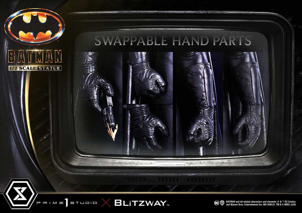 i"Tell me something, my friend. You ever danced with the devil in the pale moonlight?" Prime 1 Studio is immensely proud to present the next addition to the High-Definition Museum Masterline, the 1/2 scale HDMMDC-08 Batman from Batman 1989 film! Once again, Prime 1 Studio and Blitzway have come together to deliver another astonishing statue of the highest quality, bringing to life Michael Keaton's Batman, this time around, in the absolute 1/2 scale! Michael Keaton's portrayal of Batman in the 1989 film directed by Tim Burton was a defining moment in the Dark Knight's cinematic history. Keaton brought brooding intensity to the role, creating a dark and gritty atmosphere that made him a fan favorite and set the standard for future Batman films. This statue is a perfect way to commemorate his performance. The talented artisans bring you another screen-accurate depiction of Batman in a simple yet powerful stance. Standing at a mind-blowing height of 41 inches, bound to make a statement at the center of any collection, without a doubt! Once again, Blitzway has done an astonishing job at not only recreating a Keaton's facial features but also replicating the Batsuit. The costume's design was brought to us by Bob Ringwood, who incorporated many elements from the comics, such as the cowl with pointed ears, the golden utility belt, and the scalloped real fabric leather-like cape that all add to the ominous presence of the character. The suit now takes a midnight black shade and is heavily armored, giving it a much more menacing look and an air of invincibility. The statue comes with two sets of swappable hand parts - clenched fists and free hands as well as a third right-hand part holding the Grapple gun for the perfect storytelling. Batman stands on a Batcave-themed base, a perfect representation of the podium that the Dark Knight would have at the center of his underground base of operations. This base also features a total of four spotlight LED illuminations. In this new scale, this statue brings a whole new definition to stunning, with its unparalleled attention to detail and outstanding craftsmanship! An absolute must-have for any fans of Tim Burton's Batman film and Michael Keaton's iconic performance of the billionaire vigilante. Pre-order the HDMMDC-08 Batman now and let the Caped Crusader guard your collection! Specifications: - Statue Size approximately 41.7 inches tall [H:106cm W:53.5cm D:48cm] - Highly Definition likeness statue of Michael Keaton's Batman - Perfectly designed Batman's original costume with a genuine fabric leather cape - Batcave-themed base - LED-Illuminated Base for Batman - Three (3) Swappable right-hand part (Open, Closed, Grapple Gun) - Two (2) Swappable left-hand part (Open, Closed)