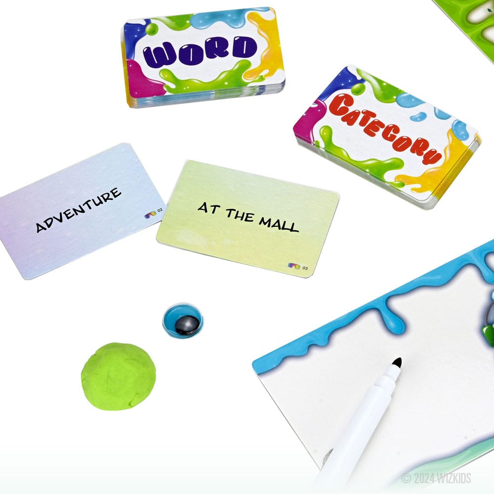 iBlob Party: Neon Nights is a cooperative party game where players start as individuals with a bit of dough and a googly eye and try to become one big blob by all giving the same answers! Let's say the group starts with the Category of "Furniture" and the Word is "Castle." All players write an answer, maybe "Throne," or "Round Table." Everyone reveals, and anyone who wrote the same thing becomes a blob - mushing together their dough and eyes - and will work together for the rest of the game. A new Category and Word are revealed for the next round, where players and blobs once again come up with answers, hoping to match with others. As the game continues, blobs and individuals merge until (hopefully!) everyone gives the same answer, becoming a Mega Blob and winning the game! Blob Party: Neon Nights is a complete game on its own with 100 new words and 25 new categories! It can be combined with the original Blob Party for even more combinations, allowing up to 16 players to play at once!" Contents: - 1 Blob of Glow-In-The-Dark Sculpting Dough and Container - 8 Googly Eyes in different colors - 100 Word Cards - 25 Category Cards - 8 Answer cards - 8 Dry erase markers Components subject to change - 4-8 players - Ages 8+ - Playing time: 15 min