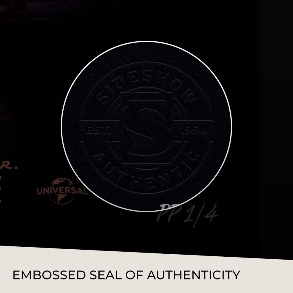 i"Woman ... Friend ... Wife ..." - The Monster (Bride of Frankenstein, 1935) Sideshow Art Prints presents the Bride of Frankenstein (Color Variant) Movie Poster by artist Ruiz Burgos. Originally a gallery-exclusive release as part of the Sideshow x CODA Universal Monsters event, this officially licensed fine art print is now available to fans through Sideshow, paying homage to Elsa Lanchester's iconic performance in the 1935 science-fiction horror sequel Bride of Frankenstein. Lightning strikes the blue and purple sky, casting heavy shadows across a moody, looming portrait of Elsa Lanchester as the titular Bride. A detailed red and yellowed scene below her depicts the mad doctors Frankenstein and Pretorius as their creation comes to life. Freshly unwrapped, the monster's mate lives a short, tortured existence as she rejects the one she was made for. And although she was on screen for a mere few minutes, her haunted visage and shrieking hiss have echoed through popular imagination, cementing the Bride's place as a horror cinema legend for generations. This vibrant variant movie poster design captures all the classic atmosphere of the beloved film with added accent colors, bordered by Gothic filigree and finished with the film's title and credits. Each Bride of Frankenstein (Color Variant) Movie Poster features an embossed Sideshow Seal of Authenticity as a part of the limited edition of 150 pieces. The Universal Monsters movie poster is available as an unframed, full bleed fine art print or in a custom black framed presentation with a wire hanger, framing grade clear acrylic, and certified archival materials. Don't miss your opportunity to bring home a piece of the legacy and collect unique alternative movie posters of your favorite cinema creatures through Sideshow. For your bedroom, media center, or secret laboratory - bring home the Bride of Frankenstein (Color Variant) Movie Poster by Ruiz Burgos today. Print details: - Officially licensed by Frankenstein - 61 x 46 cm fine art giclée print - 100% cotton, acid-free, matte Museo - Rag 260GSM - Epson archival inks - Automated artist signature - Embossed seal of authenticity