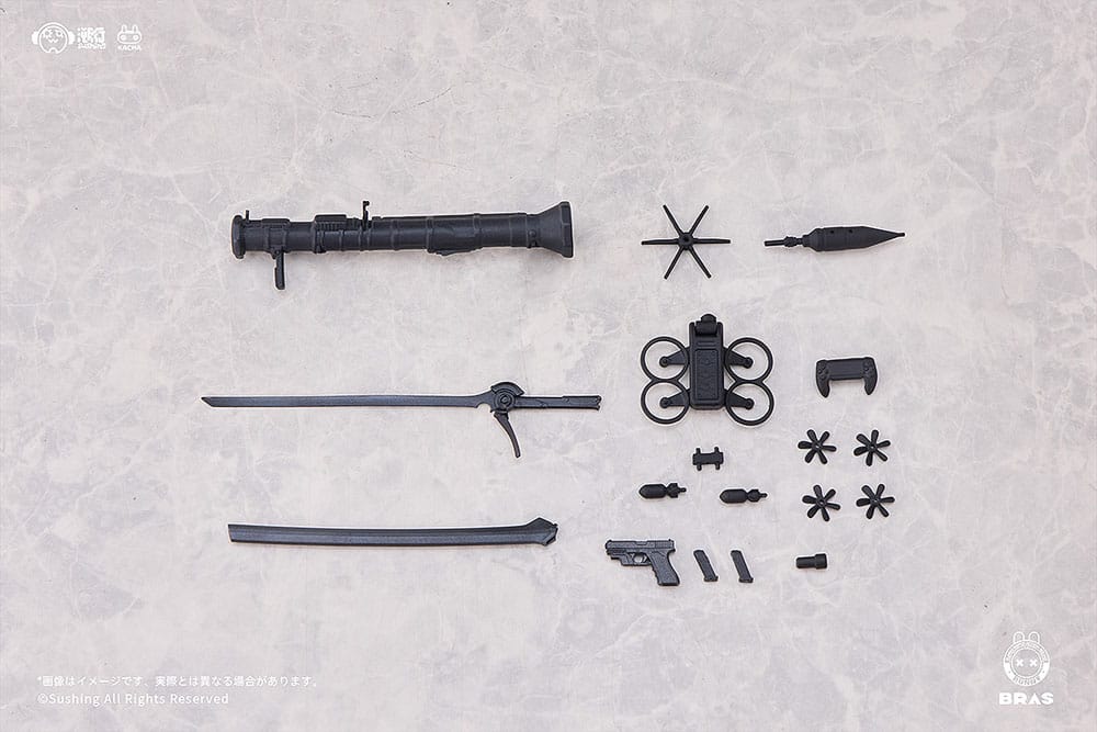 iFrom "BUNNY RAPID ACTION SQUAD" comes the fourth installment in the lineup, Attacker Runa, a girl of few words! - Includes 4 interchangeable face parts (regular face, battle face, excited face, cringe face). - Includes 5 sets of interchangeable hand parts (relaxed hands, weapon-holding hands, aim, fists, pointed middle finger). - Weapons and interchangeable parts can be stored in the base. - The kit uses KACHA joints, unique to Sushing, which allow for a wide range of movement. - Usually quiet, Runa shows a completely different side of herself on the battlefield, where she is brave and bloodthirsty. Be sure to add her to your collection!