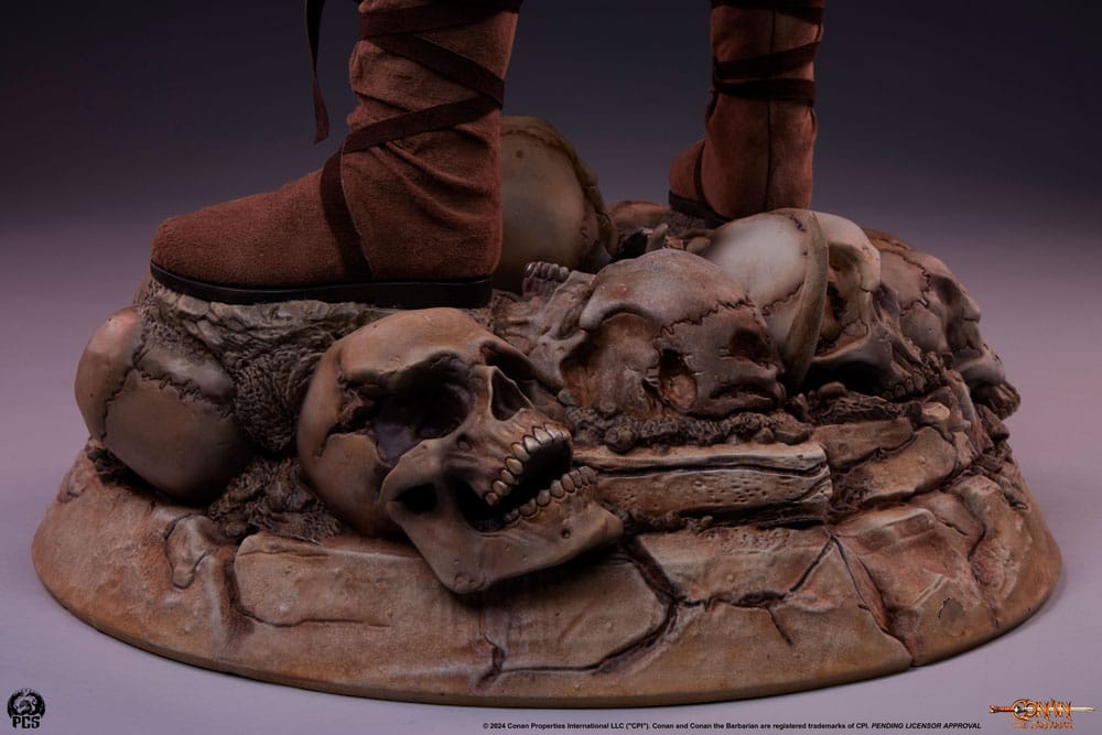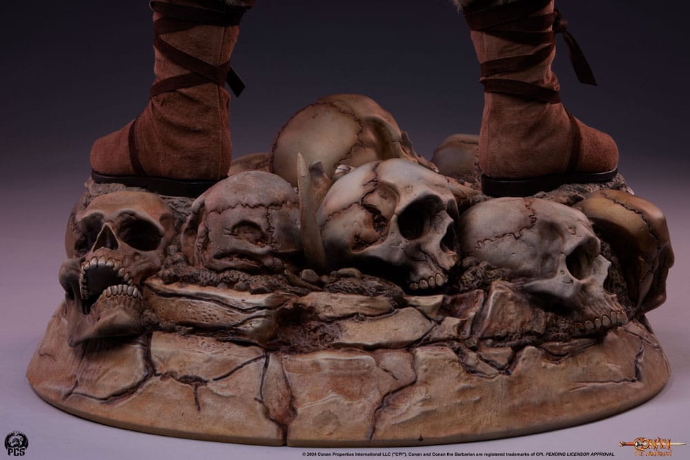 iSideshow and Premium Collectibles Studio are proud to present the Conan 1:2 Scale Elite Series Statue, a gorgeous new tribute to the epic sword and sorcery film. Standing at a staggering 46" tall, this is the definitive Conan the Barbarian statue. Featuring an uncannily accurate portrait of Arnold Schwarzenegger in his iconic role, this collectible brings the Cimmerian warrior to life as never before. The Conan 1:2 Statue features a costume masterfully crafted in real fabric including pants, gauntlets, boots with faux fur trim and a faux fur covered sheath at his hip. Clutching the Atlantean sword with both hands before him, every muscle in Conan's body appears ready for the next challenge that awaits him. The beautiful paint work on the statue emphasizes the expertly sculpted musculature of this larger than life warrior. Standing atop an environment base littered with skulls, Conan appears ready for his next adventure. Bring glory to Crom and add the Conan 1:2 Scale Elite Series Statue - Deluxe Edition by PCS to your collection today! Product size: 116 x 41 x 41 cm Please note: Due to the size of this item, additional shipping costs may apply. Apart from your location, the actual package size and weight is needed to determine those costs. Both are unknown at this point and may not be available until the product arrives in our warehouse.