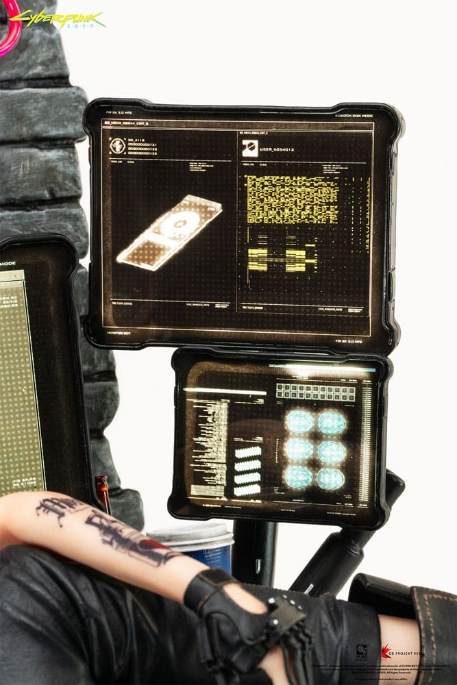 "Was gonna leave Night City in the dust, for good. Even started packing. But now I think... I think I gotta stay." - Judy Álvarez PureArts returns to Night City with the Cyberpunk 2077 Judy Álvarez ¼ Scale Statue! Charismatic braindance techie and Mox member Judy Álvarez can be found at The Mox-hangout, Lizzie's Bar, or her apartment in Kabuki, Watson. PureArts pulls from these 2 iconic Cyberpunk 2077 locations to craft a meticulously detailed statue with an LED-lit base, backlit computer screens, graffitied back wall, and a light-up Lizzie's Bar neon sign. PRODUCT FEATURES - Highly detailed ¼ scale statue - LED-lit base, computers, and Lizzie's Bar neon sign - Graffitied back wall Limited to 2077 pieces worldwide.