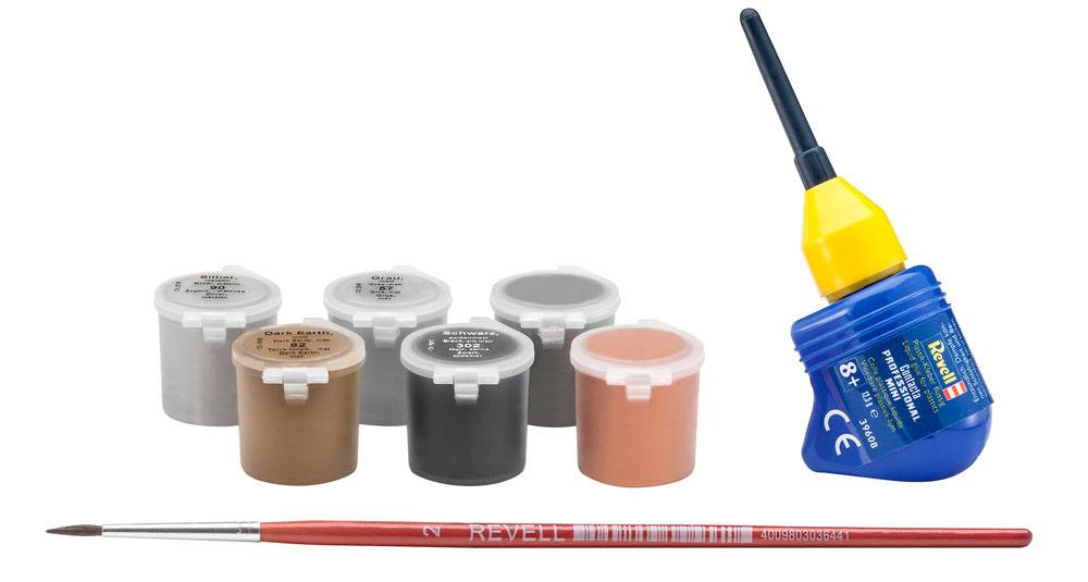 iScale: 1:144 Age: 10 + Number of parts: 87 Length: 465 mm Width: 45 mm Height: 115 mm No film shows the madness of submarine warfare as vividly and authentically as "Das Boot". This collector's edition on the occasion of the 40th anniversary of the film includes a model kit of U 96 and a replica of the 1981 film poster. - Two-piece hull - Periscopes retracted/extended - Display stand In addition to base colours, glue and brushes are also included. Scope of delivery: Plastic model kit (not assembled). Illustrated, multilingual building instructions, decals, Paints (Revell Aqua Color), 3D Puzzle LeMans Racetrack Diorama, Glue (Revell Contacta Professional Mini), Brush, poster