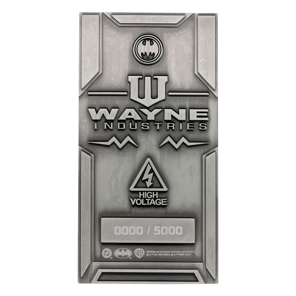 iWarning, high voltage! Own a piece of Gotham's finest technology with this limited edition Batman Wayne Industries Bat Armour Collectible Metal Ingot. This officially licensed piece pays tribute to the legendary armour designed to protect the Dark Knight on his crusade against crime. Finished with a double-sided heavily embossed design, each collectible has been individually numbered on the reverse making each unique and guarantees authenticity and exclusivity. Presented in collector's packaging, this limited edition ingot includes a display stand making it perfect for display at home, in the office, or as the ultimate gift for any Dark Knight devotee. - Officially licensed - Limited to 5,000 - Individually numbered to reverse - Size 110 x 55mm