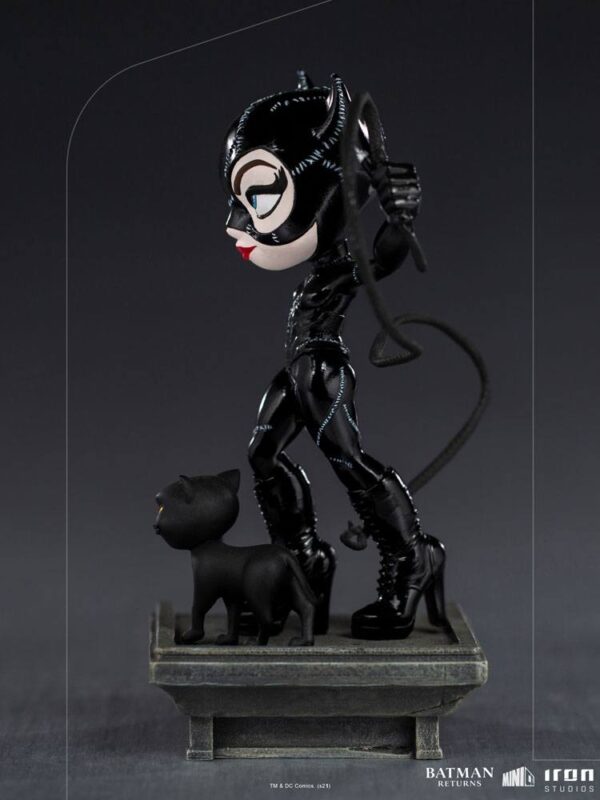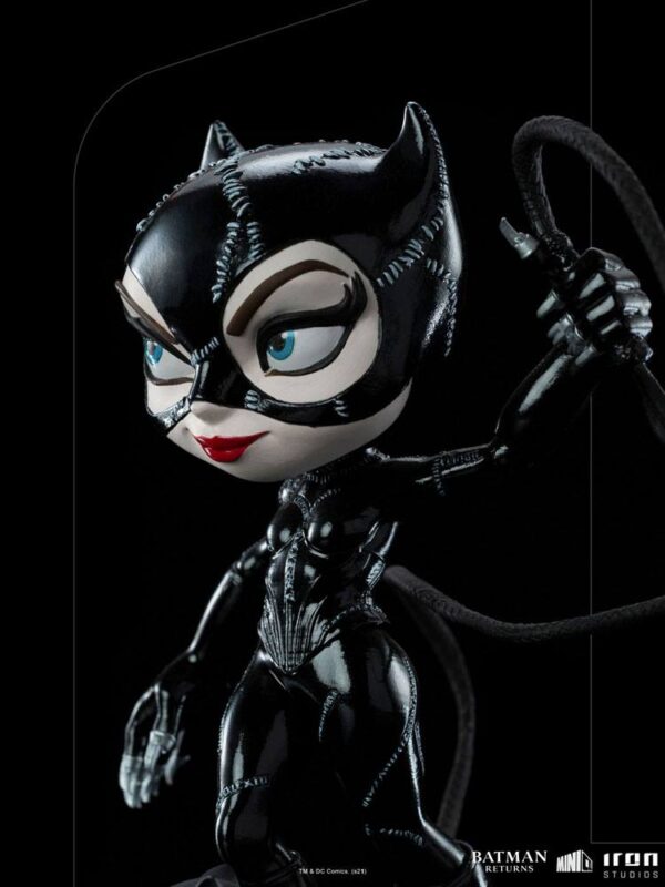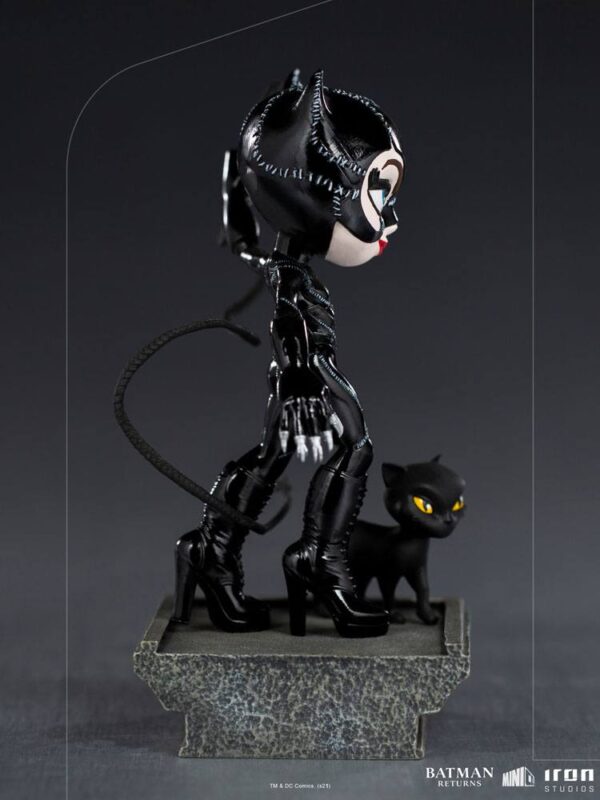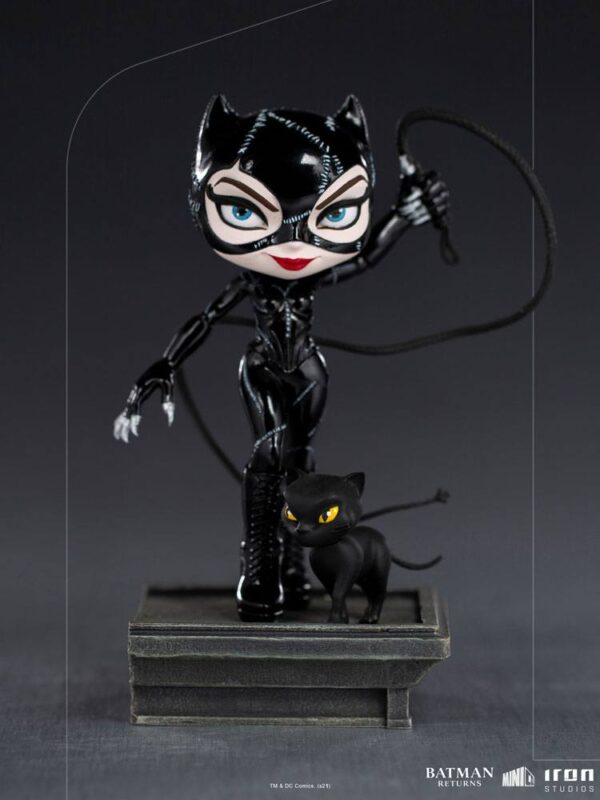 iHivatalosan engedélyezett minifigura az Iron Studios "Mini Co."-vonalából. A PVC figura kb. 17 x 12 x 9 cm magas, és a talapzattal együtt, ablakos dobozos csomagolásban kerül forgalomba. Gotham City valamelyik épületének tetején egy elegáns figura, aki foltvarrott fekete vinyl egyenruhát visel, visszatükrözi a holdfényt. Kis macskás kabalafigurája (háziállata) kíséretében felemeli ostorát, megmutatva ezüst karmait, így mutatva meg erejét és ügyességét, készen arra, hogy meghódítsa a várost és az őt védelmező Sötét Lovag szívét. Az Iron Studios a MiniCo stilizált szoborcsaládjához hozza a szeretett gonosztevőt és antihősnőt, a Macskanőt. A szobrot a Tim Burton által rendezett "Batman visszatér" (1992) című film egyik legnépszerűbb és legfeledhetetlenebb adaptációjának, a Batman visszatérnek karaktere ihlette. A macskás gonosztevő, akit a gyönyörű Michelle Pfeiffer alakított, most a csodálatos "Macskanő - Batman Returns - MiniCo - Iron Studios" szoborban látható. A Michael Keaton Batmanje és Jack Nicholson Jokerje által ihletett MiniCo szobrokkal együtt, amelyek az előző filmből, az 1989-es, szintén Burton által rendezett Batmanből származnak, a gyönyörű és vad kékszemű macska érkezik, hogy egyesüljön, és együtt alkossák a főhősök hármasát. Az elismert rendező szemével a mozikban megteremtett gótikus univerzum a képregényekben feldolgozott új kalandokat kap, és úgy tűnik, a közeljövőben a nagyvásznon is újra felbukkan a sprinter Flash régóta várt szólófilmjében, amely a DC multiverzum felfedezését ígéri.