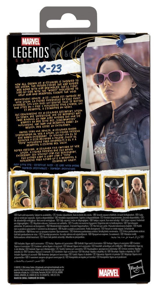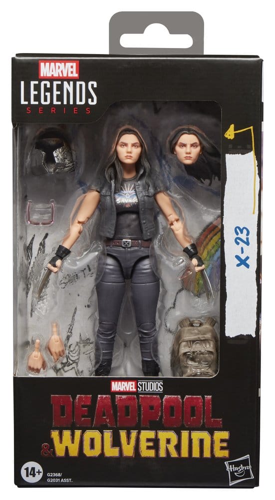 iBring the excitement and wonder of the Marvel Universe to your collection with this Hasbro Marvel Legends X-23 action figure! This collectible 6-inch scale Marvel figure is detailed to look like the character's appearance in Marvel Studios' Deadpool & Wolverine. X-23 figure is fully articulated with premium design and poseable head, arms, and legs. Marvel action figure set comes with 6 accessories, including alternate head and hands to display her with or without claws and sunglasses. Hasbro Marvel action figures' 6 inch scale make them great for displaying in fans' collections. Reimagine movie-inspired scenes on your shelf with Marvel Legends action figures and Marvel collectibles.