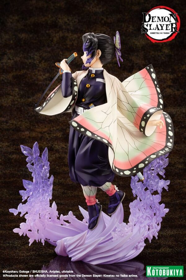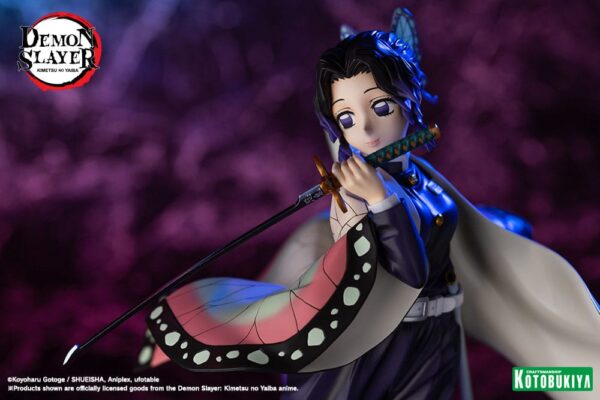 "The user of Insect Breathing, Shinobu Kocho will be released by Kotobukiya as a 1/8 scale figure! From the anime Demon Slayer: Kimetsu no Yaiba, the Insect Hashira Shinobu Kocho joins Kotobukiya's line of scale figures. Shinobu is brought to life gripping her Nichirin Blade. Shinobu's slim fingertips and haori blowing in the wind are delicately sculpted. The statue stands atop a dynamic base with a floating butterfly motif. From her hair accessory to the hilt of her Nichirin Blade, each detail of Shinobu's design is faithfully recreated. This statue perfectly captures Shinobu Kocho's beauty and lighthearted demeanor. Line her up with Kotobukiya's other figures from the series to recreate the world of Demon Slayer in your own collection"