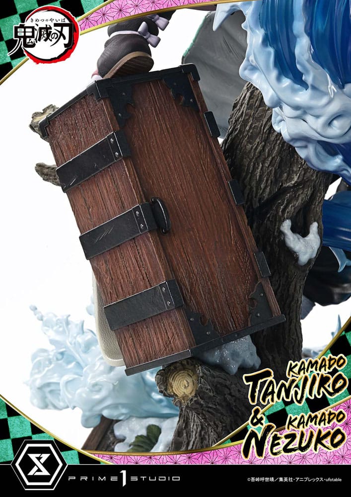 iTanjiro wields the blade. Nezuko protects with demon's might. Their bond in battle, captured at 1/6 scale. "Demon Slayer: Kimetsu no Yaiba" portrays the fragile yet powerful emotions of humans and demons alike. From this beloved anime that has captivated the world, Kamado Tanjiro and Kamado Nezuko join the Concept Masterline series. The elder brother, who became a demon slayer to restore his sister's humanity. The younger sister, transformed into a demon, yet fighting to protect human lives. Their struggle together has been brought to life in 1/6 scale. Nezuko soars in midair, Tanjiro plants his feet firmly on the ground, and the Seisei Ruten (Water Dragon of Constant Flux) spirals around them, creating both vertical height and dramatic depth. A moment of tension is captured in dynamic form. Every sculpted detail and every layer of paint merges the impression of the anime with the tangible qualities of three-dimensional form. The portraits of both Tanjiro and Nezuko are intricately crafted to convey their dignified presence while retaining the gentle softness of their youth. Their flowing haori and kimono are carefully sculpted with iconic patterns, painted with a "2.5D" approach that preserves the anime aesthetic. The breathing effect, finished in beautiful water tones, along with the heavy realism of wood and steel on the base, showcase the craftsmanship invested in every element. This art piece, capturing the siblings' fight in exquisite detail, is proudly presented to all fans of "Demon Slayer: Kimetsu no Yaiba." Product Specifications: - Demon Slayer: Kimetsu no Yaiba Kamado -Themed Base