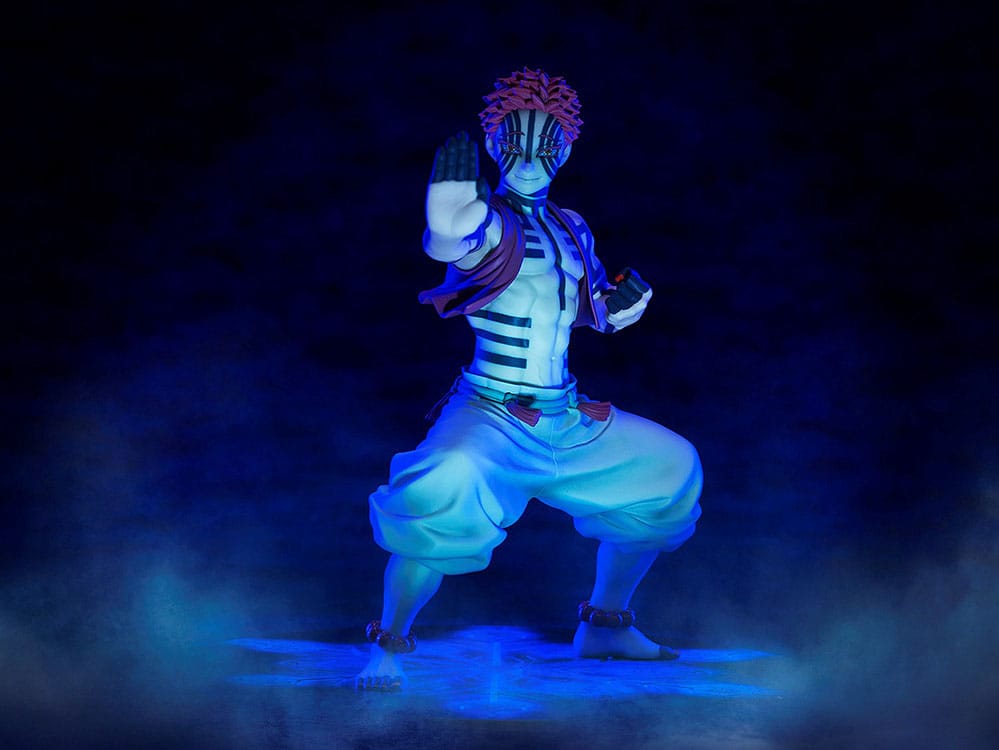 From "Demon Slayer: Kimetsu no Yaiba", the Upper Rank Three of the Twelve Kizuki, Akaza, comes to life in 1/8 scale! His honed physique is captured in stunning detail-from the muscles and bone structure visible even beneath his clothing, down to the finely sculpted veins. Not only is the sculpting exquisitely intricate, but the coloring has also been carefully applied based on the original design, with meticulous attention given to everything from his hair color to the tips of his nails. Radiating an overwhelming aura of demonic menace, Akaza possesses a presence that transcends scale-be sure to witness it up close!