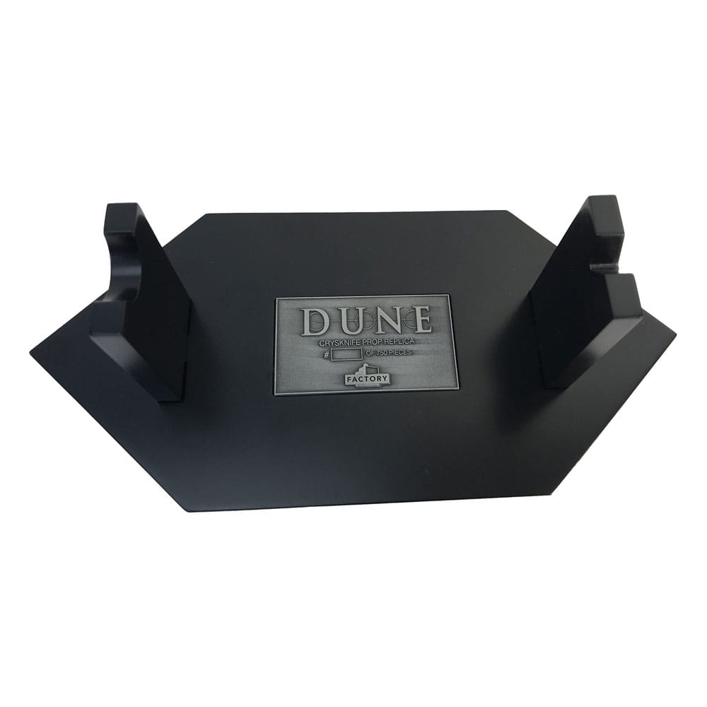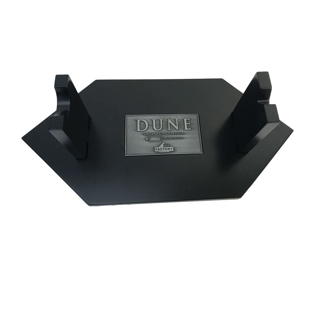 i"It's a maker...." Lady Jessica This replica reproduces the prop knife as seen in 1984's DUNE, perhaps most memorably in the scene that captures the knife fight between Paul Atreides and Feyd-Rautha. In Dune lore a Crysknife is formed from the tooth of the Sandworm or Shai-Hulud which are sacred to the Fremen of Arrakis. Each young Fremen receives a Crysknife after completing a ritual to confirm his adulthood, and legend states that a Crysknife cannot be seen by outsiders, nor can it be re-sheathed until it has drawn blood. Different props were produced for the film - a hero prop and a special effects prop which incorporated a concealed 'bloodletting' feature allowing stage blood to 'appear' as the blade inflicted an on-screen wound. This necessitated some changes to the geometry of the blade and the size of the handle. Therefore, each prop is slightly different, although both were made from epoxy resin. The Factory Entertainment team studied the original props and created a 3d model that perfectly captures the nuances of each, blended into a single execution. Cast from durable bone colored epoxy resin, each replica is then hand finished and weathered for the correct on-screen look. This painstaking process means that, like the original props, no two pieces are exactly identical. Each officially licensed replica is supplied with a custom-designed display stand, numbered metal plaque and certificate of authenticity booklet allowing you to showcase this iconic piece of cinematic history with pride. Limited to 750 pieces.