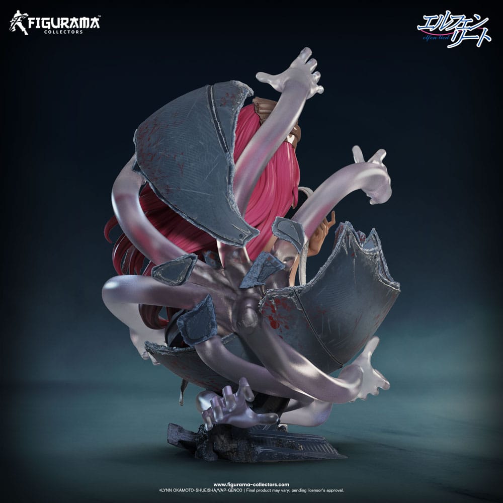 iLucy, Nyu, Kaede... Just wants to have a peaceful life, but humans keep upsetting that. As a Diclonius with split personalities Nyu can be a sweet and calm girl who doesn't want to hurt anything, or Lucy, a serial killer that wants to wipe humanity from the face of the Earth. She is a beautiful killer that uses her vectors to slice her way through anyone close enough to reach, or she can use pens and throw them through your throat. Either way you aren't safe. DESCRIPTION: Figurama Collectors are excited to reveal the statue that encapsulates Lucy's beauty and rage all in one scene. We depict her escape from the lab and the cold-hearted murder she conducts on her way to freedom. This 1/4 scale piece comes with all of the amazing detail and dynamic design you expect from Figurama Collectors and will look perfect in your collection.