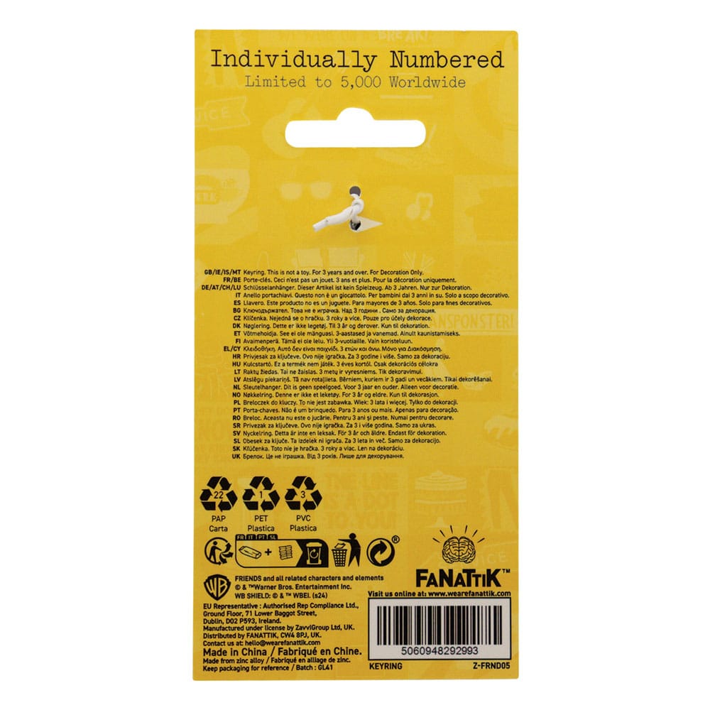 i""You don't clean the cappuccino machine?" Join Gunther and the gang in their favourite coffee house, Central Perk. Finished with intricate enamel detailing, this collectible keyring is limited to 5,000 worldwide and individually numbered on the reverse. - Officially licensed - Limited to 5000 - Individually numbered on the reverse - 60x46.8mm - Metal with enamel detail - Split ring