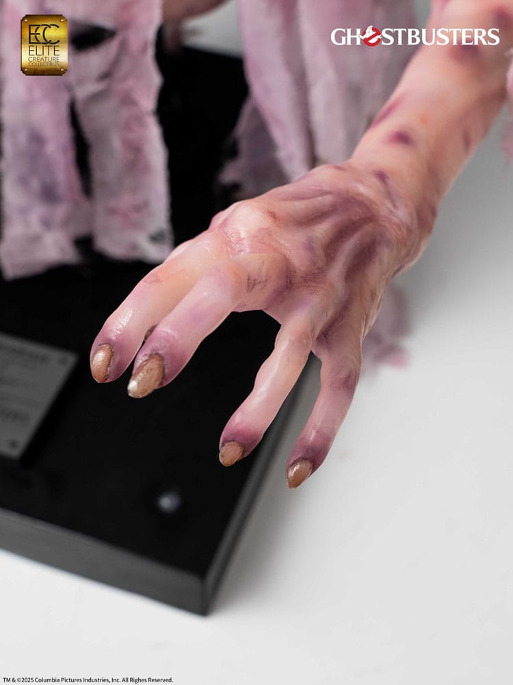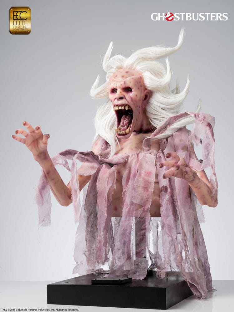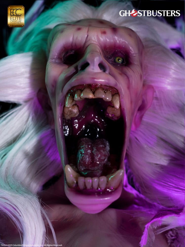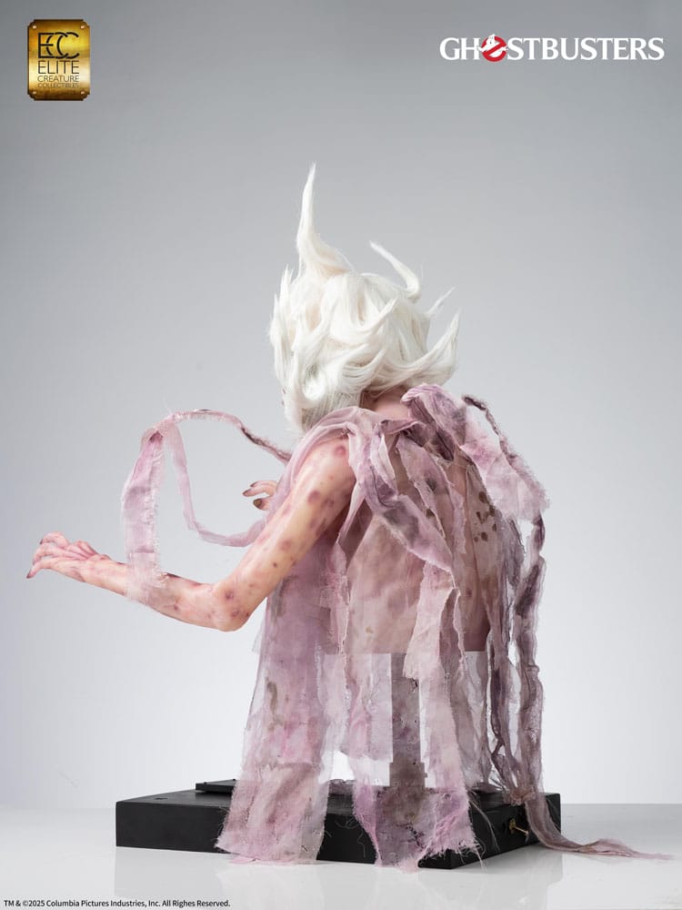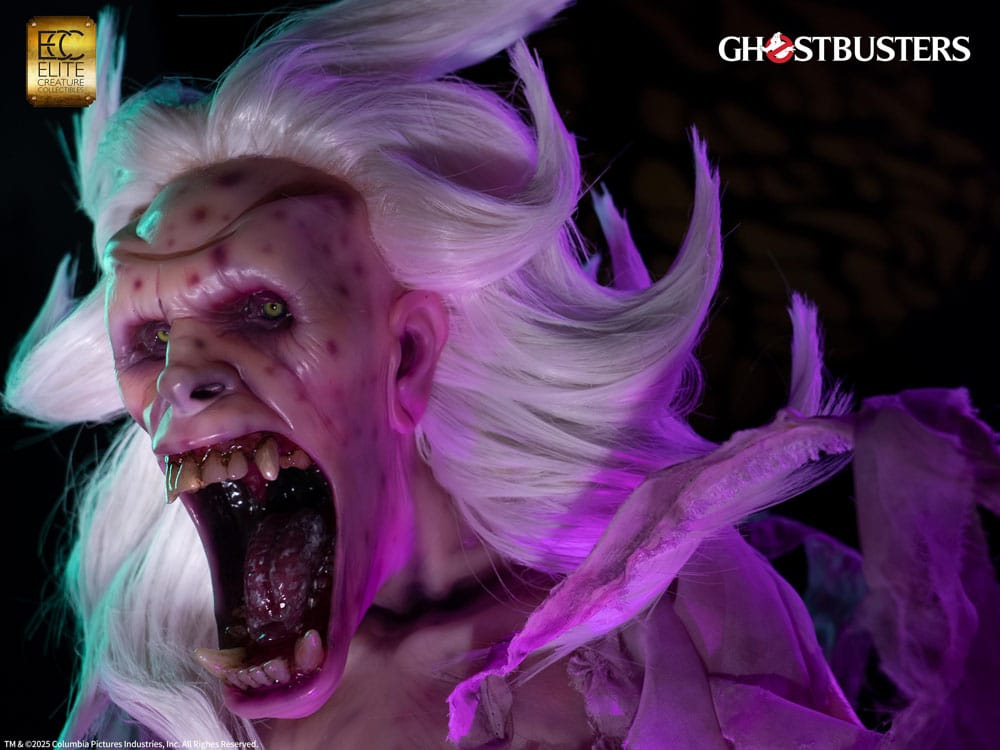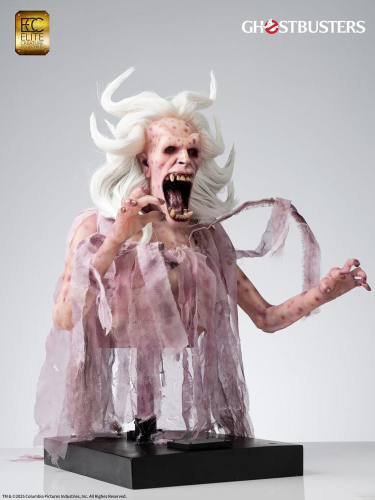 iGhostbusters is a 1984 American supernatural comedy film directed by Ivan Reitman and written by Dan Aykroyd and Harold Ramis. The story follows three eccentric parapsychologists who start a ghost-catching business in New York City. The Library Ghost, also known as the Librarian, was the spirit of a librarian and the very first ghost the Ghostbusters encountered. She appears to be an unusual reader, stacking books high in the air, and also makes an appearance in Ghostbusters: Frozen Empire. She continues to wander the stacks of the New York City Public Library, organizing books and shushing noisy patrons with a bony finger to her lips. By most accounts, she still resembles the same polite and genteel woman she was in life. Aggravate her, however, and she transforms into a rage-filled horror - and heaven help you if you have any overdue books! Elite Creature Collectibles is proud to present the Librarian Elite Scale (2/3 Scale) Bust, created in collaboration with Arjen Tuiten, the special makeup and creature effects designer for the Ghostbusters franchise, including Ghostbusters: Afterlife and Ghostbusters: Frozen Empire. Tuiten is known for creating and designing practical effects for ghosts and creature characters, such as the "Old Miner Ghost," updating Gozer's look, and conceptualizing the "Polter" ghost for Frozen Empire. Specifications: - Approximately 29.5 inches (74 cm) in height - Approximately 18.2 inches (46 cm) in width - Approximately 19 inches (48 cm) in depth - Cast in semi-translucent resin with hand-painted details - Prop-grade glass eye, artificial hair, and real fabric elements - Includes Certificate of Authenticity hand-signed by Arjen Tuiten - Museum-style display base with LED illumination Limited to 84 pieces Worldwide