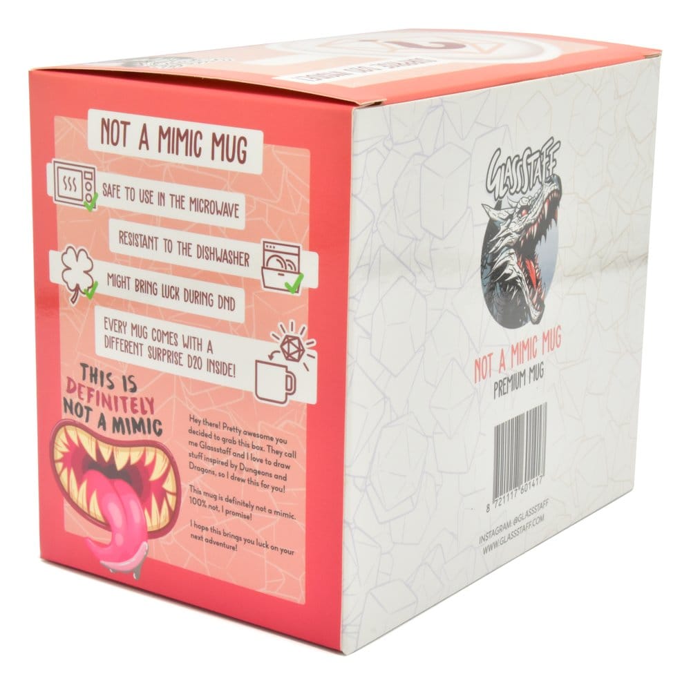 iOh, this is definitely not a mimic (Said every DM ever) Dare to take a sip out of these mimic mugs? Careful though, it can possibly result into a common phrase Dungeon Master's use: ""Roll Initiative."" But we promise you. This is definitely NOT a mimic. This DnD mug is perfect for coffee, tea and hot chocolate during those intense DnD sessions!! The mug is printed with High quality sublimation printing, which makes it an appreciated gift to every true hot beverage lover. The design is printed on both sides of the mug, so you and your party members can enjoy it! This mug is especially crafted with the idea to be gifted to you, your party members, friends and family. Along with a little gift of a D20 in every mug, you will be able with every enjoying moment of your drink to; Roll for initiative. Presented in a decorative Window Box, the Mug is made of Ceramic that makes it Dishwasher as well as Microwave safe.