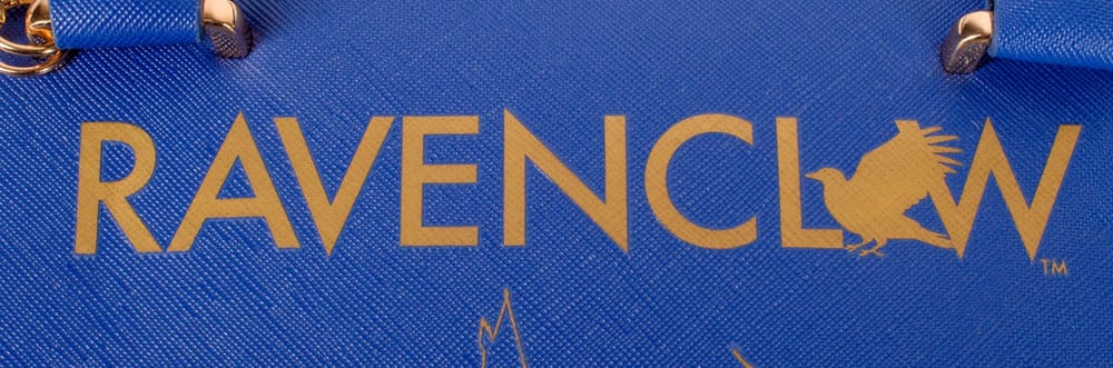Show your house pride with this fabulous Harry Potter Ravenclaw Handbag. Both fashionable and practical, it's versatile enough for any occasion. The rich blue outer is complemented with navy accents on the corners and zip, and gold stud detailing. The front of this stylish bag is decorated with "Ravenclaw" in eye-catching gold lettering, and an image of the Raven mascot surrounded by the house motto of "Learning, Wit, Wisdom". The back features a small and elegant logo of a stylised Raven silhouette, encircled by gold text. The spacious interior is fully lined in coordinating navy fabric, with two easy-access patch pockets, and a zip fastening pocket for valuables. Every bag comes with a fully adjustable and removable matching shoulder strap, and a colourful Hogwarts crest metal charm with a matching navy tassel. - Officially licensed Weekend bag - Material: PU Leather