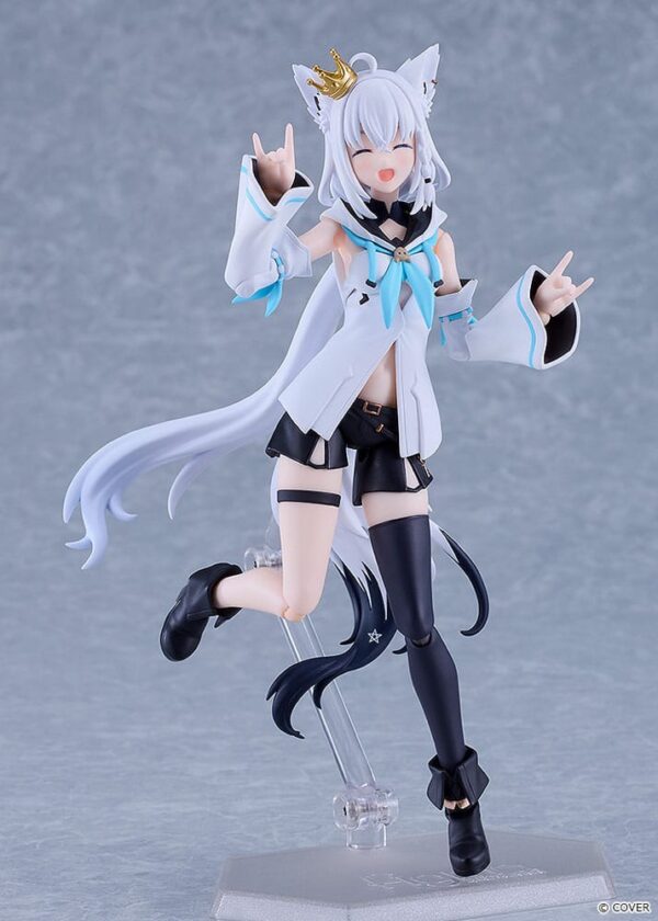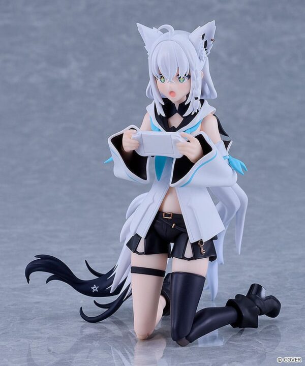 From the popular virtual YouTuber group "Hololive Production" comes a figma of Shirakami Fubuki! Face plates: - Smiling face - Closed-eyes smiling face - Surprised face Optional parts: - Portable game device - Sukonbu - Oruyanke - Fox ears with crown - Other optional parts for different poses.