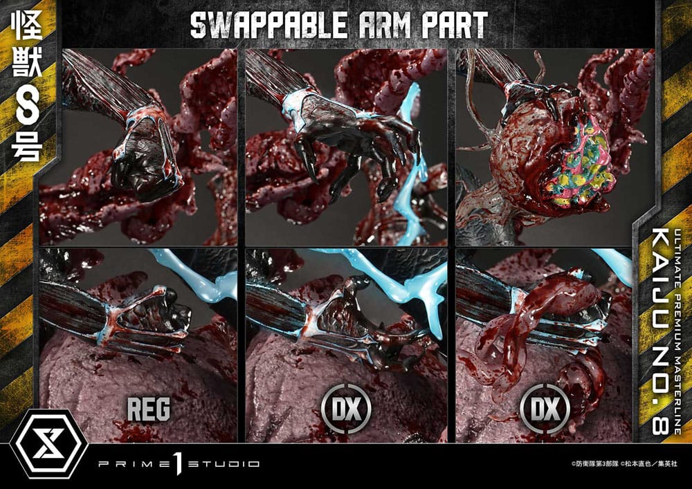 "It'll be okay. Anytime that happens, I'll be right next to you!" The Kaiju Who Defeats Kaiju emerges, radiating with Fortitude 9.8. Set in a Japan overrun by kaiju,?"Kaiju No.8"?tells the story of a man who never gives up on his dreams and the friends who fight alongside him. From the hit anime brought to life by the stunning visual craftsmanship of Production I.G, Kaiju No.8 joins the Ultimate Premium Masterline lineup! This extraordinary statue captures Kafka Hibino stepping into a world he once gave up on, transformed into a literal kaiju to protect those he holds dear. The dynamic, dramatic pose radiates a sense of motion and energy. From the scales covering his chest and arms to the solid exoskeleton, and the exposed bones of his head and back, every detail is intricately sculpted and painted to elevate the on-screen design into three dimensions. The piercing blue-white light radiating from his eyes and body through the built-in LED features, combined with the dramatic effect parts and the defeated form of the Trikonephila, a powerful kaiju he fought in the story, creates the overwhelming presence of Fortitude 9.8. The Deluxe version includes a variety of head and hand parts, allowing for diverse expressions. Display him roaring in defiance, tearing through kaiju, or showing the resolute gaze of Kafka Hibino. With the included head stands, you can create your ultimate display with endless customization possibilities. In this Deluxe Bonus Version, the head part revealing Kafka's human face is included as a special bonus and comes also with a head stand. Half kaiju, half human this extraordinary expression highlights the inner conflict and unyielding resolve of a man who has become a monster. Infused with the power of a legendary kaiju and the strength of a human spirit that rises again and again, this statue will radiate its presence right next to you for years to come! Limited to 350 pieces. Product Specifications: - Kaiju No.8 Themed Base - 3 x Swappable Heads (Serious, Roaring, Left-Eye Kafka) - 3 x Swappable Right Hands (Fist, Open Hand, Gripping) - 3 x Swappable Left Hands (Fist, Open Hand, Gripping) - 2 x Head Stands - LED Light-Up Feature (Serious, Roaring, Left-Eye Kafka, Body) - 1 x Swappable Head (Split Kafka) [BONUS PART] - 1 x Head Stand [BONUS PART] - LED Power Supply Method: TBA * Please prepare batteries, USB cables, or other necessary items depending on the final power supply method.