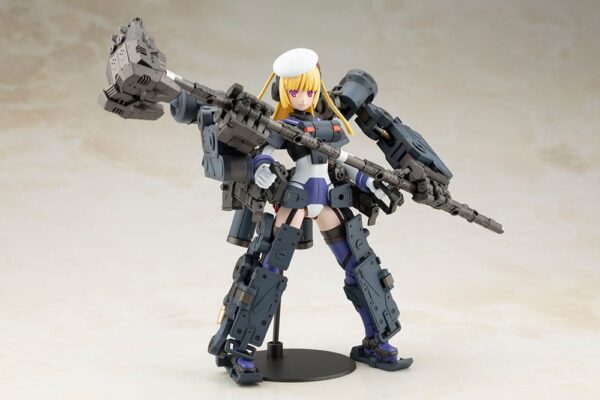 "The latest addition to the spin-off series of Kotobukiya's original Frame Arms robot series, Frame Arms Girl, is a specialist in underwater combat, GREIFEN BARRACUDA! Based on the original Frame Arms mecha designed by Tomotake Kinoshita, Greifen is transformed into an original female character by Tomotake Kinoshita himself! Frame Arms Girl Greifen loads up with Weapon Unit43 Excannon in this compilation kit! Model Specifications: - The main armor is colored in Hexa Blue which is the same color as Dual Spiral Crusher Set and Bulkarm a. The joints and Excannon are colored in gunmetal allowing for easy customization with parts in the same color. - The power suit parts can be rearranged into various armament combinations. - The fingers on the mecha hands are poseable and the claws on the deployable sub-arms can be opened and closed. - In addition to the fully detachable beret, the model comes with a clear red helmet and comes with modified hair parts to use with the helmet. - In her unarmed form, Greifen can use the hand knife, rocket launcher, and machine gun. - Three newly designed pre-printed face parts are included (Looking Forward, Looking Right, Winking). - The sliding joint on the hip allows for a wide range of movement. - The wrists are articulated with ball joints that allow for a variety of poses. - Includes four types of hands (Closed, Open 1, Open 2, Holding Weapons). - The hands, including joints, can be interchanged with those of the existing Frame Arms Girl series. - The model is compatible with equipment from the M.S.G and Frame Arms series. It is highly compatible with Dual Spiral Crusher Set which are molded in the same color. EXCANNON: - Includes five circular covers for the top of the armor. They can also be used with the 3mm connections on Frame Arms and other model kits. - Includes a turret unit that is compatible with the Torpedo Tube mode that can be connected with a grip that is compatible with hands from the Frame Arms line. - In addition to the Torpedo Tubes and Cannons, the parts can be rearranged into various combinations. ?This product contains both Frame Arms Girl Greifen and Weapon Unit43 Excannon as a set. What is Frame Arms Girl? Frame Arms Girl is a spin-off of Kotobukiya's original model kit series, Frame Arms, that creates a bishoujo-style character for each mecha. The kits come with multi-colored parts and face parts pre-printed with tampography, making them easy to assemble with no paint required. Equipped with the signature 3mm joints and PVC hands from Frame Arms, Frame Arms Girl models can be combined with a variety of parts from series such as M.S.G (Modeling Support Goods), Frame Arms, and more! The latest models' heads, arms, and legs in the series are fully compatible with each other, so users can create their very own unique Frame Arms Girl!"