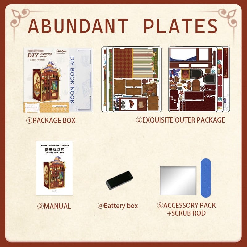 Creative Escape Between Your Books - CuteBee Book Nooks CuteBee Book Nooks are more than decorative shelf pieces - they are immersive creative experiences for kids, families, and kidults, recommended for ages 12 and up. Designed as detailed 3D wooden puzzles, they offer a calm, focused building process that encourages screen-free, stress-reducing me-time. Each model follows a clear and logical structure with easy-to-understand instructions, creating quick moments of success throughout the build. The balance between engaging assembly and a beautiful final result brings a deep sense of satisfaction and relaxation. Perfect for fans of LEGO, building blocks, scale models, and Japanese model kits. The laser-cut wooden parts provide a premium feel with precise fits, clean edges, and a high-quality finish. Thanks to the Easy-Snap system, most elements can be assembled with minimal glue, making the process beginner-friendly, clean, and reversible. With a wide range of themes including fantasy, medieval worlds, magic, Asian-inspired scenes, and cozy settings, CuteBee Book Nooks offer strong collectible and resale value - clearly not a one-time purchase item. Note: Batteries and wood glue are not included.