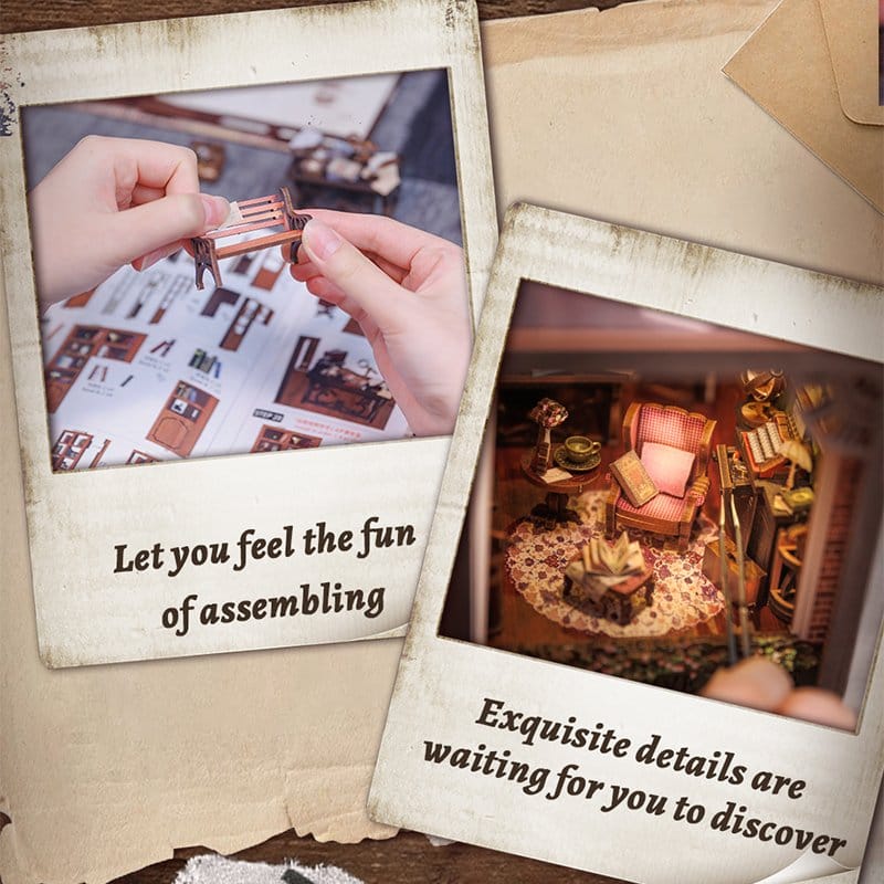 Creative Escape Between Your Books - CuteBee Book Nooks CuteBee Book Nooks are more than decorative shelf pieces - they are immersive creative experiences for kids, families, and kidults, recommended for ages 12 and up. Designed as detailed 3D wooden puzzles, they offer a calm, focused building process that encourages screen-free, stress-reducing me-time. Each model follows a clear and logical structure with easy-to-understand instructions, creating quick moments of success throughout the build. The balance between engaging assembly and a beautiful final result brings a deep sense of satisfaction and relaxation. Perfect for fans of LEGO, building blocks, scale models, and Japanese model kits. The laser-cut wooden parts provide a premium feel with precise fits, clean edges, and a high-quality finish. Thanks to the Easy-Snap system, most elements can be assembled with minimal glue, making the process beginner-friendly, clean, and reversible. With a wide range of themes including fantasy, medieval worlds, magic, Asian-inspired scenes, and cozy settings, CuteBee Book Nooks offer strong collectible and resale value - clearly not a one-time purchase item. Note: Batteries and wood glue are not included.