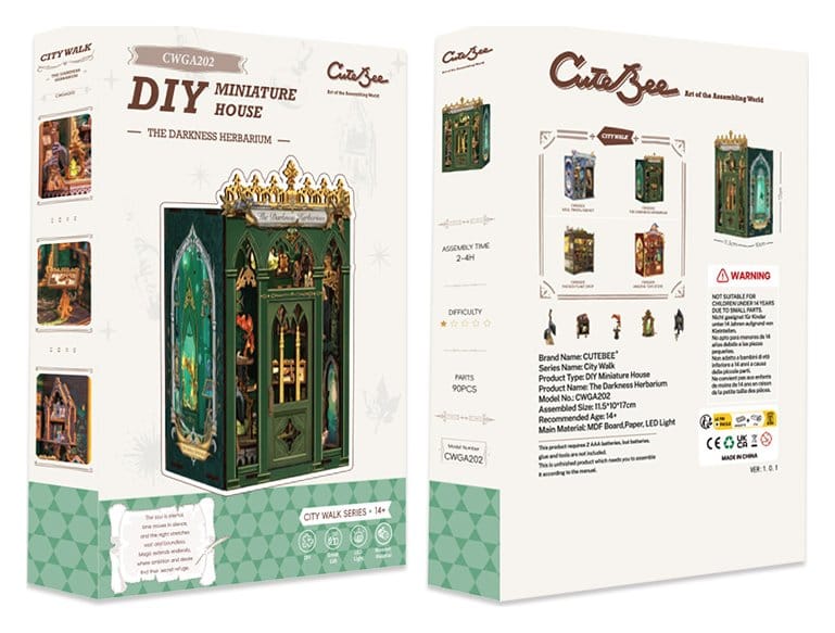 Creative Escape Between Your Books - CuteBee Book Nooks CuteBee Book Nooks are more than decorative shelf pieces - they are immersive creative experiences for kids, families, and kidults, recommended for ages 12 and up. Designed as detailed 3D wooden puzzles, they offer a calm, focused building process that encourages screen-free, stress-reducing me-time. Each model follows a clear and logical structure with easy-to-understand instructions, creating quick moments of success throughout the build. The balance between engaging assembly and a beautiful final result brings a deep sense of satisfaction and relaxation. Perfect for fans of LEGO, building blocks, scale models, and Japanese model kits. The laser-cut wooden parts provide a premium feel with precise fits, clean edges, and a high-quality finish. Thanks to the Easy-Snap system, most elements can be assembled with minimal glue, making the process beginner-friendly, clean, and reversible. With a wide range of themes including fantasy, medieval worlds, magic, Asian-inspired scenes, and cozy settings, CuteBee Book Nooks offer strong collectible and resale value - clearly not a one-time purchase item. Note: Batteries and wood glue are not included.