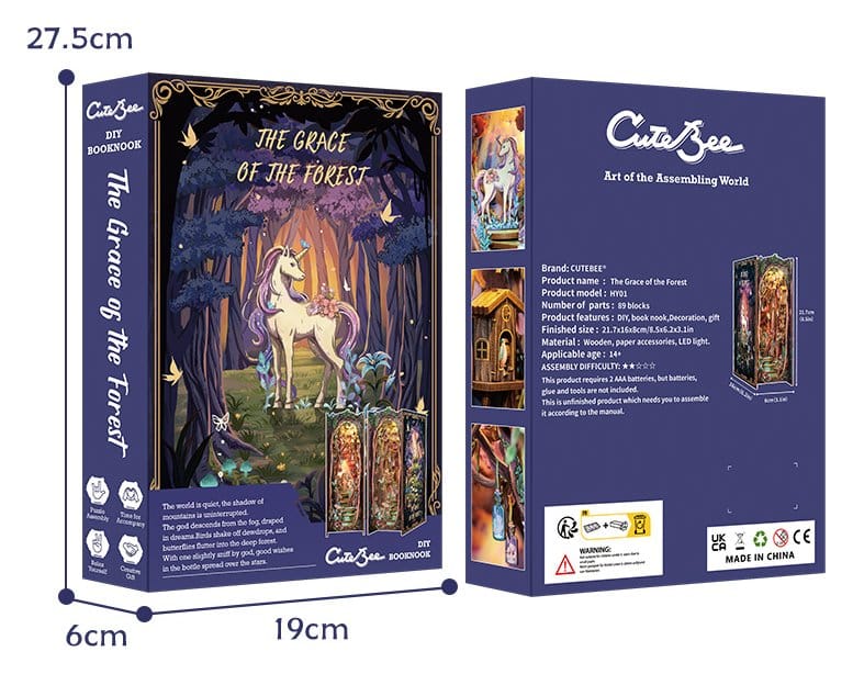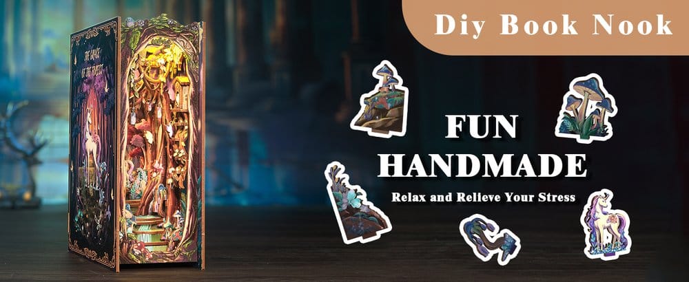 Creative Escape Between Your Books - CuteBee Book Nooks CuteBee Book Nooks are more than decorative shelf pieces - they are immersive creative experiences for kids, families, and kidults, recommended for ages 12 and up. Designed as detailed 3D wooden puzzles, they offer a calm, focused building process that encourages screen-free, stress-reducing me-time. Each model follows a clear and logical structure with easy-to-understand instructions, creating quick moments of success throughout the build. The balance between engaging assembly and a beautiful final result brings a deep sense of satisfaction and relaxation. Perfect for fans of LEGO, building blocks, scale models, and Japanese model kits. The laser-cut wooden parts provide a premium feel with precise fits, clean edges, and a high-quality finish. Thanks to the Easy-Snap system, most elements can be assembled with minimal glue, making the process beginner-friendly, clean, and reversible. With a wide range of themes including fantasy, medieval worlds, magic, Asian-inspired scenes, and cozy settings, CuteBee Book Nooks offer strong collectible and resale value - clearly not a one-time purchase item. Note: Batteries and wood glue are not included.