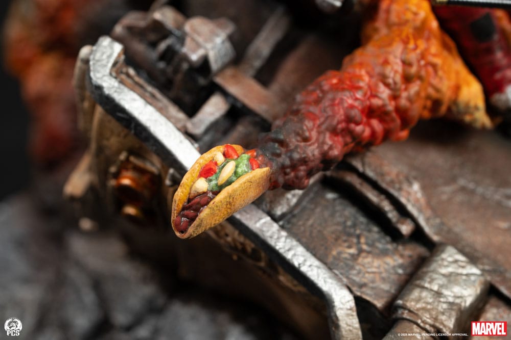 iPremium Collectibles Studio presents the Deadpool - Fine Art Bust, inspired by the merc with a mouth's myriad Marvel appearances through the years! Measuring 16.5" tall and 10.5" wide, this unique fine art piece is an action-packed 360-degree scene displaying the chaotic world of Deadpool and his cohorts known in some circles as the Deadpool Corps. This fully sculpted diorama features a collection of 'Pools springing forth from a massive Taco-truck explosion at the center of the action. Several members of the infamous Deadpool Corps are represented here including Ladypool, Kidpool and Headpool with the man himself strutting forth with trusty ol' Dogpool at his side. Each character is expertly sculpted and painted to capture the excitement of these fan-favorite characters. The Deadpool- Fine Art Bust is anchored by a beautifully detailed portrait of Marvel's mouthy mutant. From the industrial texture of his red mask to the shiny leather-like texture surrounding his expressive eyes, this collectible is designed to be the centerpiece of the ultimate Deadpool collection. Drop that chimichanga and pick up the Deadpool - Fine Art Bust for your PCS collection today! Product size: 42 x 26 x 29 cm