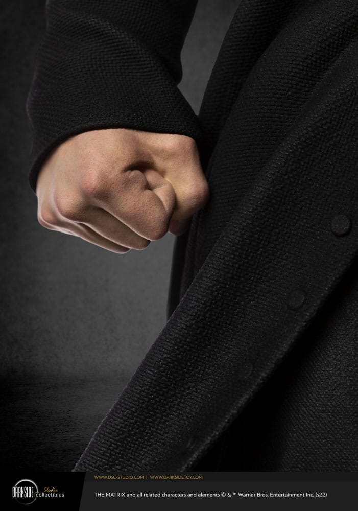 "Morpheus: "You take the blue pill, the story ends, you wake up in your bed and believe whatever you want to believe. You take the red pill, you stay in wonderland, and I show you how deep the rabbit hole goes." Celebrating the 20th Anniversary of the Matrix Trilogy, one of the greatest science fiction films of all time, DarkSide Collectibles proudly presents Keanu Reeves as Neo. With a stunning likeness of Keanu Reeves, the statue represents Neo as The One. Fully confident in his powers the One is able to manipulate the artificial world within the Matrix to a tremendous degree. His ability to influence the coding of the Matrix allows him to stop incoming fire from multiple attackers and even fly. He no longer requires firearms, relying solely on hand-to-hand combat. Neo is masterfully sculpted to the finest detail and is presented in his signature Cassock fighting coat. In addition, the removable signature sun glasses complete the stunning presentation. With hyper realistic fully sculpted clothing details and a stunning hyper real life like skin likeness portrait of the actor Keanu Reeves the ultimate collector's satisfaction is guaranteed. A themed base accompanies the stunning presentation. Neo stands atop a masterfully sculpted and painted coding of the Matrix. Green telephone hard lines, unique gateway to enter or exit the Matrix, surrounds the base. The front of the base features a removable magnetic Matrix Theme Plaque including the iconic Blue pill Red Pill dilemma Highly detailed and accurate the statue has been developed under the supervision of the actor Keanu Reeves and Warner Bros for a stunning result of the iconic character. The finest sculpting techniques are implemented in this statue to guarantee the satisfaction of all Matrix Fans. Neo is the first statue of the Matrix 20th Anniversary series developed by Darkside Collectibles Studio, under license by Warner Bros... Morpheus and Trinity will follow. A printed Certificate of Authenticity guaranties the authenticity of the work of art produced by Darkside Collectibles Studio under license from Warner Bros. This is a must have piece for all science fiction fans Limited Edition 500 worldwide. Product Size: 53 x 29 x 26 cm