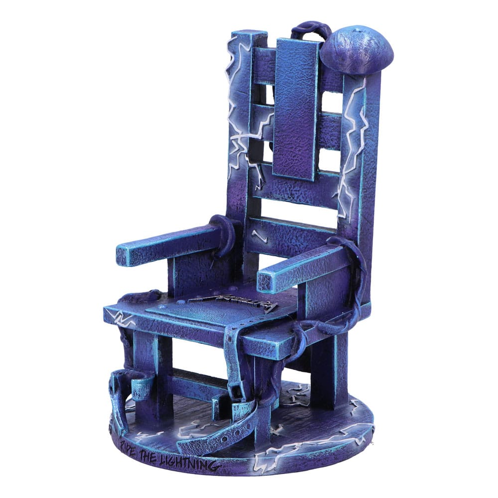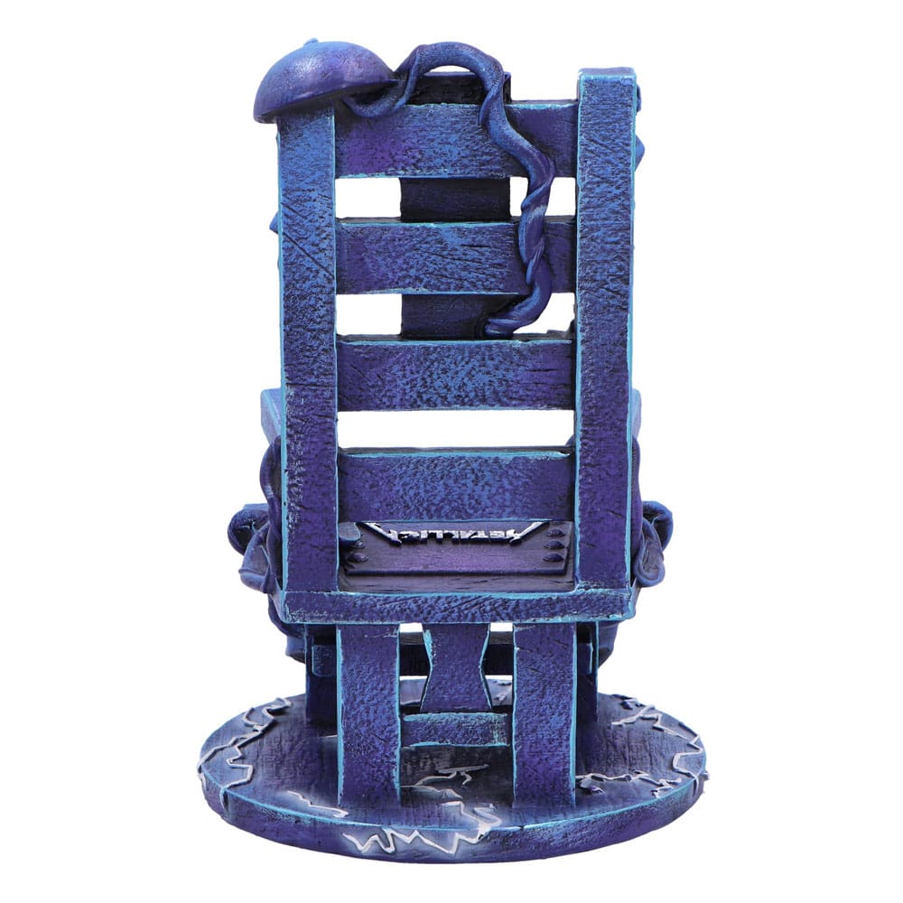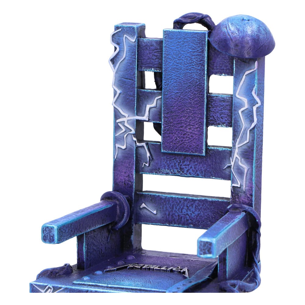 i"Unleash your inner rocker with the Officially Licensed Metallica Ride the Lightning chair ornament, a stunning tribute to the legendary band's iconic second studio album. This unique piece features a striking blue electric chair adorned with the bold Metallica logo at its center, surrounded by intricate white lines of electricity. Crafted from high-quality resin and meticulously hand-painted, this ornament captures the essence of Metallica's electrifying energy and makes a bold statement in any space. Whether you're a dedicated Metallica fan, a lover of heavy metal music, or someone who appreciates gothic and horror-themed decor, this ornament is the perfect addition to your collection. It not only pays homage to Metallica's influential music but also serves as a striking decorative piece that sparks conversation and admiration. Its detailed craftsmanship and bold design make it a standout addition to any room, shelf, or display cabinet. Packaged in a Nemesis Now Metallica branded gift box, this Ride the Lightning ornament is ideal for gifting to fellow fans or for treating yourself. The box not only ensures safe storage and transport but also enhances the presentation, making it a perfect gift for any occasion. Elevate your decor and showcase your love for Metallica with this exceptional piece that celebrates one of the greatest albums in heavy metal history."