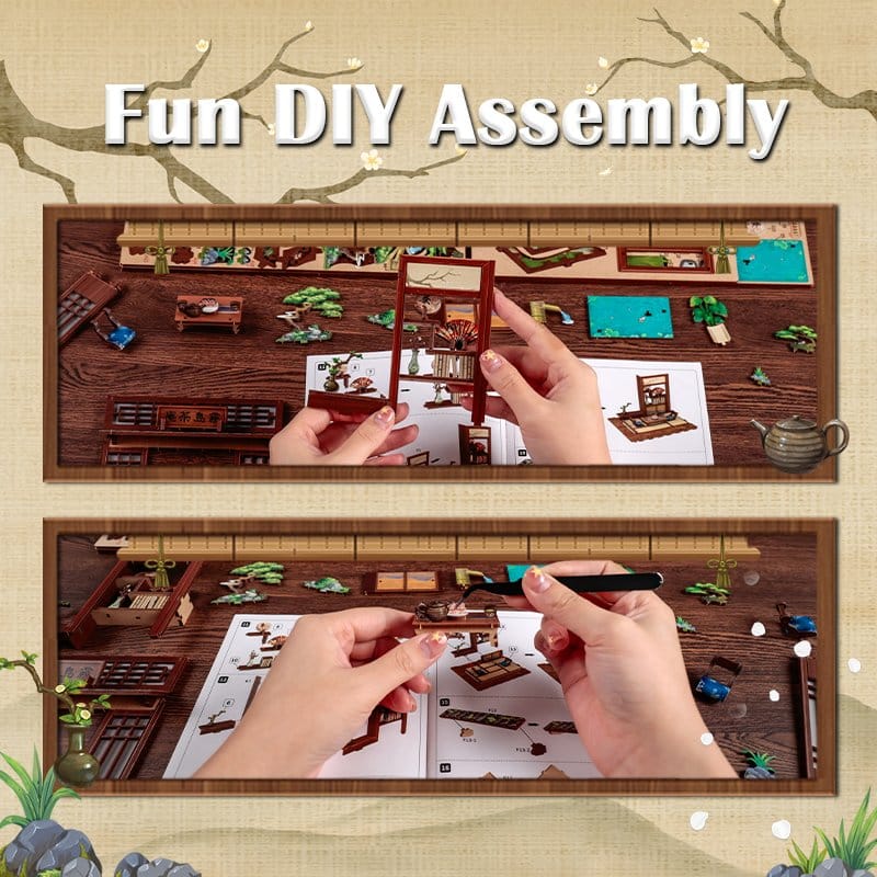 Creative Model Building with Soul - CuteBee Miniature Houses CuteBee Miniature Houses invite you to slow down and fully immerse yourself in a creative process. Designed as detailed 3D wooden puzzles, they are a popular creative trend for kids, families, and kidults, recommended for ages 12 and up. The building process is well-structured, logical, and easy to follow, guiding you step by step toward a beautifully crafted miniature world. Each completed section delivers a sense of achievement, making the experience both calming and deeply satisfying - a perfect anti-stress, screen-free activity. Thanks to precision laser-cut wooden parts, every model offers a premium feel with clean edges and accurate fits. The Easy-Snap assembly system allows many parts to be connected with minimal glue, reducing mistakes and making the build accessible even for beginners. With a wide variety of themes such as cozy interiors, fantasy worlds, Asian-inspired scenes, and magical settings, CuteBee Miniature Houses encourage collecting, trading, and long-term enjoyment, offering strong resale and collector value. Adhesive and batteries (2 x AAA) not included!