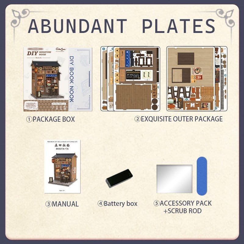 Creative Model Building with Soul - CuteBee Miniature Houses CuteBee Miniature Houses invite you to slow down and fully immerse yourself in a creative process. Designed as detailed 3D wooden puzzles, they are a popular creative trend for kids, families, and kidults, recommended for ages 12 and up. The building process is well-structured, logical, and easy to follow, guiding you step by step toward a beautifully crafted miniature world. Each completed section delivers a sense of achievement, making the experience both calming and deeply satisfying - a perfect anti-stress, screen-free activity. Thanks to precision laser-cut wooden parts, every model offers a premium feel with clean edges and accurate fits. The Easy-Snap assembly system allows many parts to be connected with minimal glue, reducing mistakes and making the build accessible even for beginners. With a wide variety of themes such as cozy interiors, fantasy worlds, Asian-inspired scenes, and magical settings, CuteBee Miniature Houses encourage collecting, trading, and long-term enjoyment, offering strong resale and collector value. Note: Batteries and wood glue are not included.