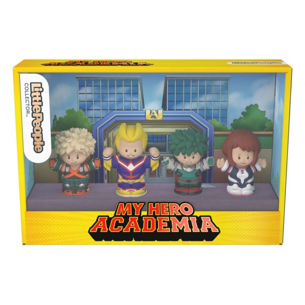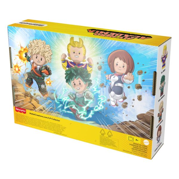 From Fisher-Price's "Little People Collector" series comes this multi pack of mini figures. They are approx. 7 cm tall and come in a a window box packaging. Included are: All Might, Izuku Midoriya, Katsuki Bakugo, Ochaco Uraraka