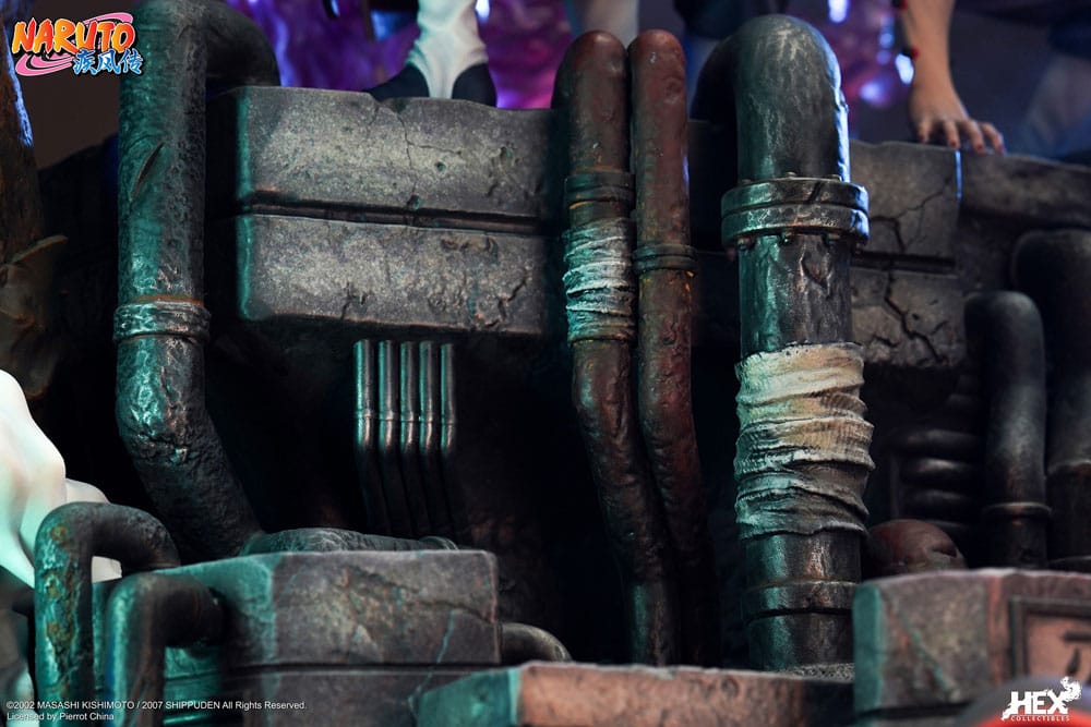 "Now this world shall know pain." HEX Collectibles proudly presents the Six Paths of Pain Ultimate Diorama Statue (Pro) in 1:8 scale from Naruto Shippuden. This stunning statue features exquisite sculpting and detailed painting, vividly capturing the commanding presence and formidable power of each Path. Tendo stands in the center of the diorama, raising his hand in a powerful posture. Surrounding him, Ningendo, Gakido, Shurado, Jigokudo and Chikushodo are arranged in a well-designed composed tableau, bringing cohesive aesthetic harmony to the diorama design. Beneath their feet lies a breathtaking depiction of the unique architecture of the Village Hidden in the Rain. The metallic sheen on pipes and bricks lends a lifelike quality, enhancing the overall realism. Giant multi-head dog and snake-tailed chameleon are summoned around them, while at the backside, the King of Hell opens its large mouth in anticipation of souls. Wreathing the entire diorama, flames and smoke merge with the enveloping darkness, giving an extremely impressive feeling to the whole statue. Just like the brand concept of HEX Collectibles, the team has always looked at ways to push the boundary on design and capture the essence of each character we love. HEX Collectibles will continue to bring beloved characters to life with the distinguished dynamic design style. Naruto Shippuden fans, don't miss your chance to add this statue to your collection!