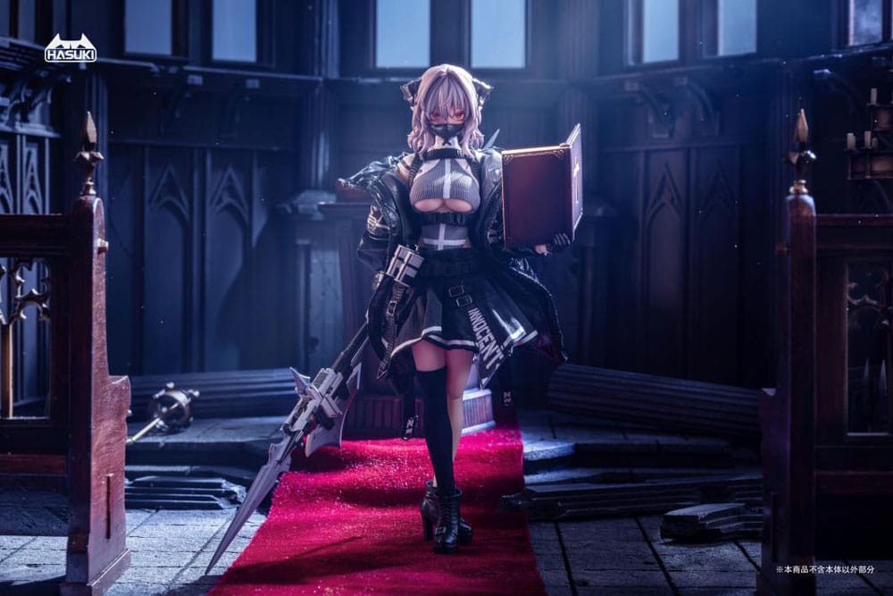 Introducing FRIEDE, the succubus sister, from the "POCKET ART" series, a 1/12 scale articulated figure line produced by HASUKI! Breaking away from the traditional images of succubi or sisters, Friede appears wearing an oversized coat and a single thigh-high stocking, boasting immense combat power. This time we are offering two versions: the Normal Edition and the Special Edition. The Special Edition comes with two combination weapons, allowing for even more dynamic and captivating poses. Don't miss the chance to add the enchanting Friede to your collection!" Accessoires: - 1 x Articulated Body - 1 x Head - 4 x Replacement face parts (smiling, tongue out, mask,praying) - 6 x Replaceable hand parts (peace,gripping,relaxed,weapon-holding,gun-holding,praying) - 2 x Combination weapons - 2 x Grenades - 1 x Bible - 1 x Revolver - 1 x Flag - 1 x Eye movement gimmick - 1 x Display base - 1 x Skirt - 1 x Top - 1 x Outer - 1 x Stocking(one leg)