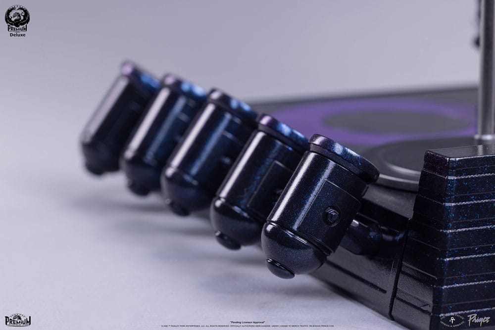 The Prince 1:3 Statue - PCS Deluxe immortalizes the pop icon as he appeared in the classic film "Purple Rain". The award winning pop star is depicted at center stage, his right hand cupped over his ear, egging on the crowd. The base is lined with LED light-up floor lights and is adorned with his ubiquitous, "Love Symbol #2" depicted in his trademark purple. Prince is sculpted in exquisite detail and features an exceptionally lifelike deco application. Prince's iconic Purple Rain outfit is recreated here in beautiful detail. The statue features a purple fabric jacket with a satin finish, a lace pocket square and metal studs on the right shoulder. His lacy white dress shirt and black trousers which button down the sides complete the look. His custom white cloud guitar with gold accents is slung over his shoulder, held up by a distinctive leopard print strap. Add some rock royalty to your collection and bring home the Prince 1:3 Statue - PCS Deluxe today! Product Size: 63 x 32 x 25 cm