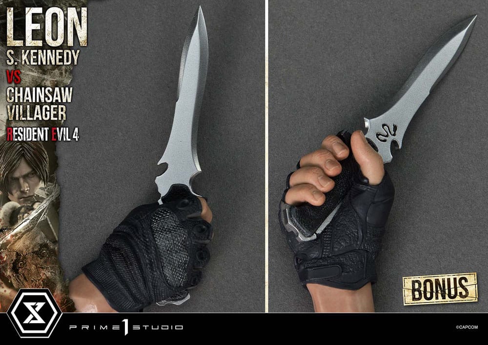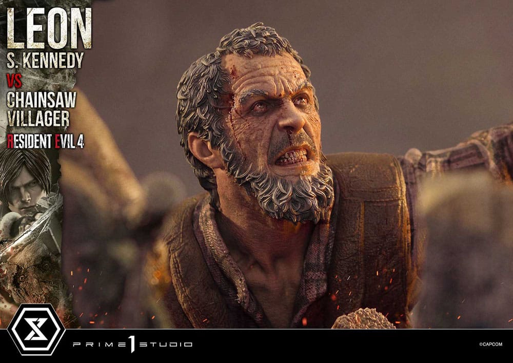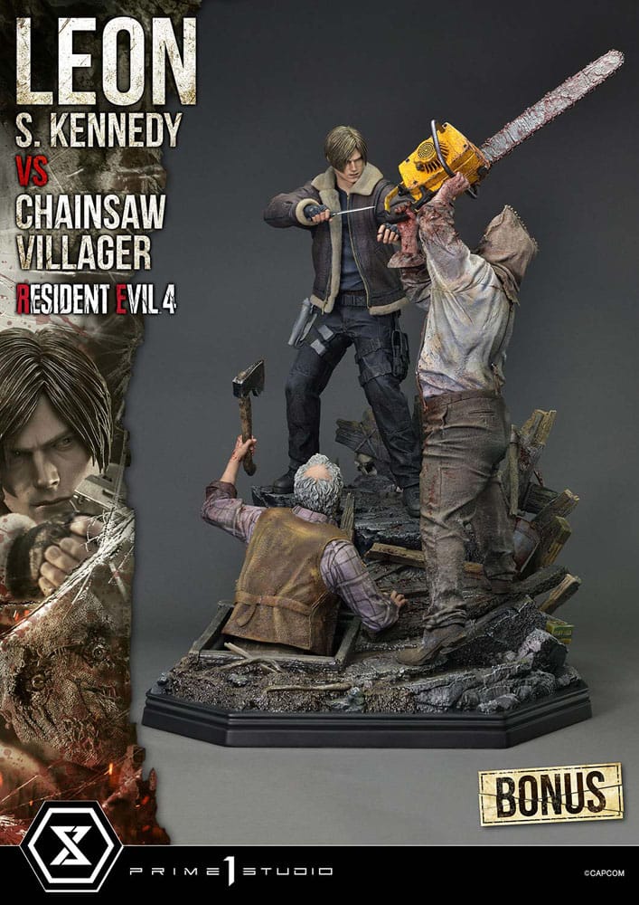 Resident Evil 4 Ultimate Prémium Masterline Series Szobor 1/4 Leon S. Kennedy vs. Chainsaw Villager Bonus Ver. 76 cm