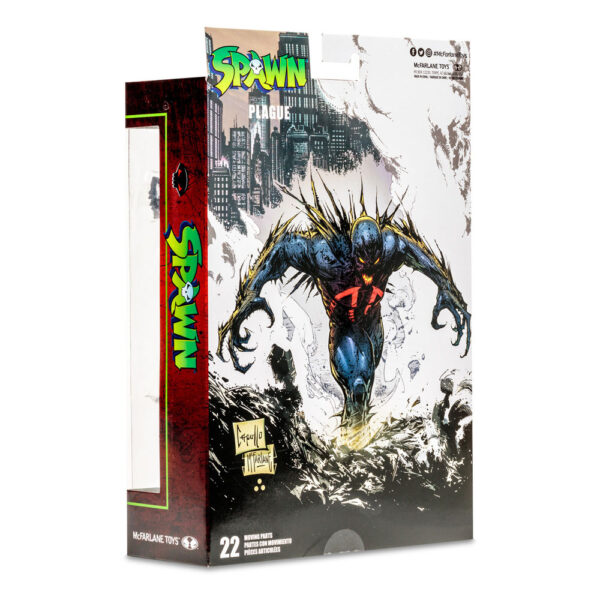 Plague was the first. A creation of the Lord of Hell himself, Malebolgia. Plague, however, could not be controlled. He was an unprecedented force of nature that could cast off the yoke of the most powerful creature in Hell. Realizing his mistake, Malebolgia imprisoned Plague in the darkest pit in Hell for all of eternity. Unfortunately, the machinations of Cogliostro freed Plague and released his evil into the world. Product Features: - Incredibly detailed 7" scale figure based off Todd McFarlane's Spawn Comic Series - Designed with Ultra Articulation with up to 22 moving parts for full range of posing and play - Plague includes alternate hands, skull rock base attachment and base - Featured in Spawn themed window boxed packaging - Collect all McFarlane Toys Spawn figures