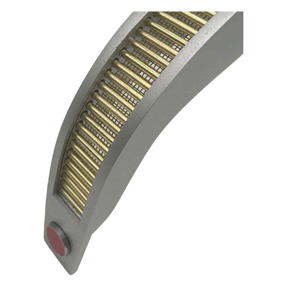 i"It is a remarkable piece of bio-electric engineering..." Geordi La Forge The VISOR (an acronym for Visual Instrument and Sensory Organ Replacement) was a medical prosthetic used by the Federation to aid with blindness and visual impairment. It gave users visual acuity far beyond typical human ability, into other spectrums including infrared and ultraviolet. The VISOR, as seen in the Star Trek: The Next Generation TV series and the 1994 film, Star Trek: Generations, was worn by Helmsman and subsequently Chief Engineer Geordi La Forge, played by Levar Burton. Multiple props were produced, with various revisions and changes made to the design over its long tenure. There was no single definitive VISOR prop. Factory Entertainment's VISOR prop replica has been created after careful study of resources in the Paramount archives, as well as authenticated props in private collections. The replica is intended to capture all VISOR props as they appeared in seasons 2 through 5 of Star Trek: The Next Generation, in a single blended execution. The frame of the replica is cast from an aluminum alloy, while the rods and wire mesh are made from brass. It also features magnetic red neural output pods with screen accurate red prismatic tape, with two options: protruding or recessed, as seen on screen in different iterations of the prop. Each replica includes a museum style acrylic display case, a sequentially numbered metal plaque and Certificate of Authenticity (COA) booklet. Limited to 500 pieces. Size: 20 x 25 x 25 cm