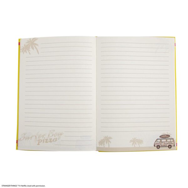 iA hiteles Surfer Boy Pizza logóval díszített jegyzetfüzet az ikonikus Surfer Boy Pizza étteremlánc és annak felejthetetlen karaktere, Argyle, a pizzaszállító hős előtt tiszteleg. A keményfedeles füzetben egy pár Eleven's Pizza Goggles szemüveget fedezhetsz fel, a füzetben pedig vonalazott papírt, hogy lejegyezhesd álmaidat, firkálmányaidat vagy akár egy titkos pizzareceptet. Akár a pizza szerelmese vagy, akár a Stranger Things rajongója vagy, ez a jegyzetfüzet tökéletes kiegészítője egy egyedi írószergyűjteménynek. - Keményfedeles jegyzetfüzet - 160 oldal - Jegyzetfüzet méretei: Méretek: 15 x 21 x 1,4 cm - Tartalmazza az Eleven pizzás poharakat