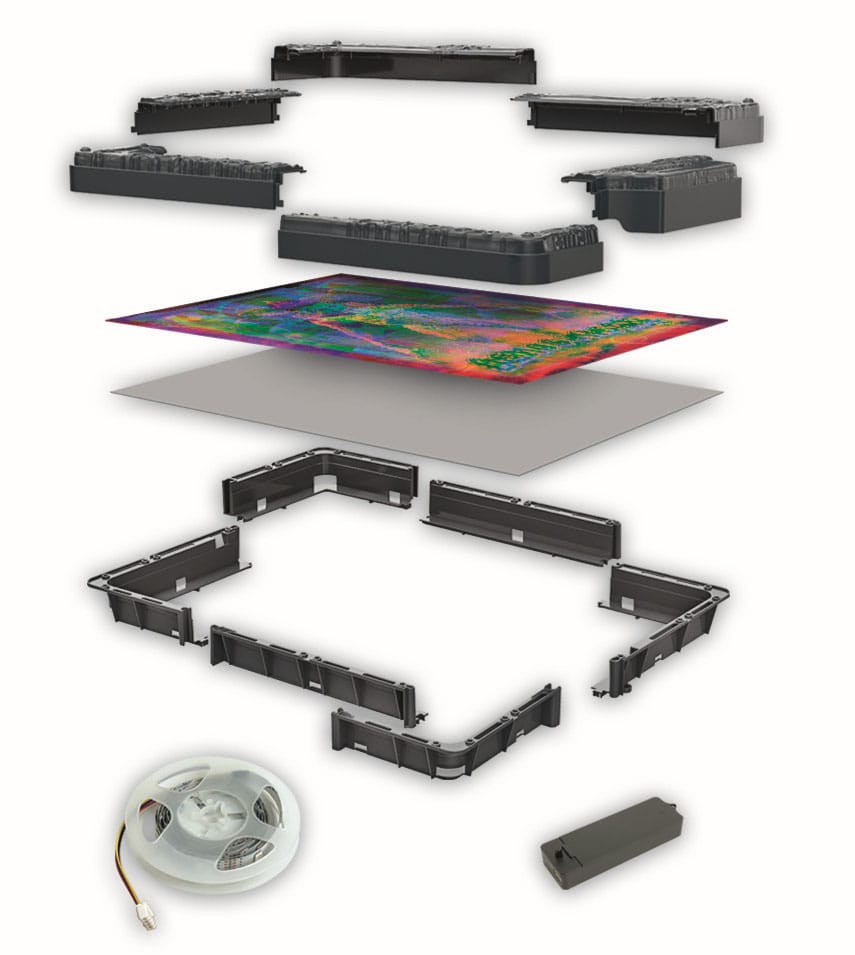 Discover the entire Metamorphic Art Collection and choose your favourite image to immerse yourself in the world of Stranger Things. The epic battle between Elfi and the Demogorgon depicted in this image expresses the mysteries of the shadow world. Assemble the puzzle, build the frame, turn off the lights and turn on the LED to experience it for yourself. The product includes: 520-piece puzzle (49 x 36 cm), cardboard box, glue, frame to assemble, electrical module, LED RGB strip, poster with the image and instructions. When the light is on, you can see three layers of colour in the image. When the light is off and the LED is on, you can see the image that corresponds to the colour of the LED. - Officially licensed puzzle - 520 pieces - Dimensions: 49 x 36 cm