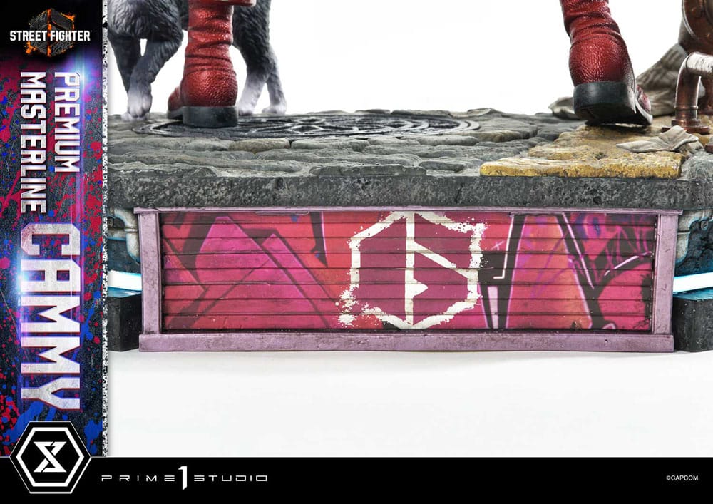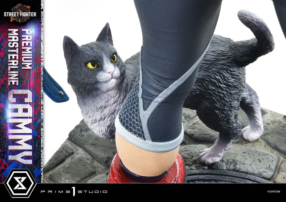 i"We found ourselves, now we fight to defend our newfound lives" Prime 1 Studio is very proud to present the next addition to the Premium Masterline, the long-awaited 1:4 scale PMSF6-01UTS Cammy Ultimate Bonus Version from Street Fighter 6! With the arrival of the sixth installment of one of the world's most legendary fighting games, Prime 1 Studio is delivering you yet another jaw-dropping 21 inches piece of art, this time around featuring none other than Cammy White, a fierce member of the British special forces of Unit Delta Red. Over the years, she's become a beloved and enduring icon in the Street Fighter series, and we are thrilled to be bringing her to life. Cammy is meticulously crafted in her brand-new look, featuring her new civilian outfit, gone is the iconic leotard, she now wears a bright cropped blue jacket with the Union Jack, the flag of Great Britain painted on the back, and a midriff-baring crop top and tight, stretch fabric workout leggings, still ready for combat if the need arises, as represented with her crimson gloves. As always, our sculptors and painters go to great lengths to texture and paint every inch perfectly. The base features the cobblestone streets of Britain, featuring LED illumination - and let's not forget Cammy's cat, who always seems to be lurking around after each victory! The Ultimate Version takes this already stunning statue to a whole different level. We are adding a full swappable bust for Cammy, featuring her with crossed arms as she stretches and gets ready for an encounter. A separate stand features special effects that can be placed behind her, as well as a bust stand. The base also featured a variant of the "6" logo. When you order the Bonus Version from our official online store or any authorized distributor, you will also receive a cool logo stand featuring graffiti of her name. This beautiful Cammy statue is a must-have for any Street Fighter enthusiast. Pre-order the PMSF6-01UTS Cammy Ultimate Bonus Version now, while quantities last, and let Cammy's indomitable spirit inspire your collection! Specifications: - Statue Size approximately 21.6 inches tall [H:55cm W:38cm D:32cm] - Effect Wall Size approximately 24.1 inches tall [H:62cm W:49cm D:12cm] - Street Fighter 6 themed base - Two (2) Swappable Bust (Normal & Folding Arms) - One (1) Bust Stand - One (1) Effect Wall - LED light-up function on base