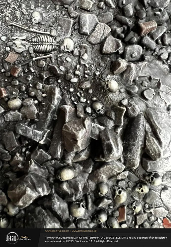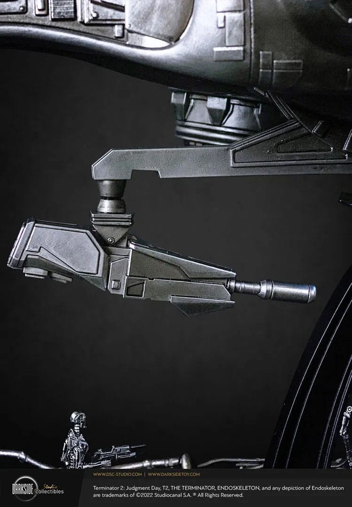 "Darkside Collectibles Studio proudly presents The Terminator 2 30TH Anniversary Aerial Hunter Killer Maquette. As a final installment to the 30th Anniversary celebration series comes the Aerial Hunter Killer Maquette. With an astonishing 60 cm (23.62 inches) Length, 47 cm (18.51 inches) Width and 42 cm (16.54 inches) Height the maquette is masterfully hand crafted and individually hand-painted to the highest quality standards. Fully sculpted to the finest detail this masterpiece features authentic light up functions, rotatable plasma canon, rotatable landing gear and rotatable turbine engines. The Aerial HK fights atop a themed base that features stunningly detailed endoskeletons marching within the destroyed playground environment. Sculpted to the finest detail the highly detailed environment completes a screen accurate iconic representation of the future war as seen in the prologue of the movie. Aerial Hunter Killer Maquette is the final Statue of the line of Terminator 2 Judgment Day series developed by Darkside Collectibles Studio, under license by Studio Canal and Oak Productions. A printed Certificate of Authenticity, guaranties the authenticity of the work of art produced by Darkside Collectibles Studio This is a must have piece for all Terminator fans! Limited to 200 pieces.