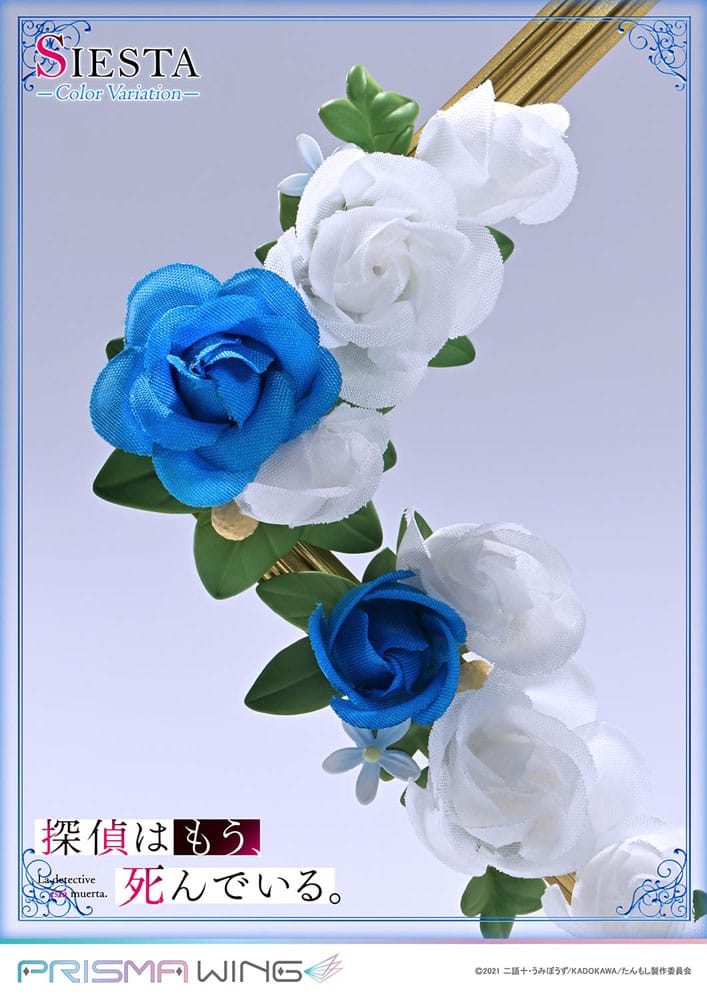 Beauty in color, elegance in form, and perfection in every detail. From the TV anime "The Detective Is Already Dead," a stunning new color variant of Siesta in her elegant wedding attire makes her appearance. Now dressed in a serene blue reminiscent of clear skies and the open sea, the beloved detective takes on a refreshing new charm. Her embroidered veil adorned with roses, the gently fluttering ribbons, and the gracefully flowing skirt are all painted in a delicate range of hues. Combined with pure white, they evoke an image of refined grace and quiet intelligence. This version brings forth an entirely new side to one of Siesta's most iconic outfits. Accentuating her elegance is a special photo frame-style base blooming with a blue rose. Display it standing tall or resting softly at the base-enjoy multiple arrangements to suit your style. With a gentle smile like an angel's, Siesta stands framed in timeless beauty. We bring you her everlasting charm, now touched with a fresh new hue. Product Specifications: - Special Photo Frame-Style Base