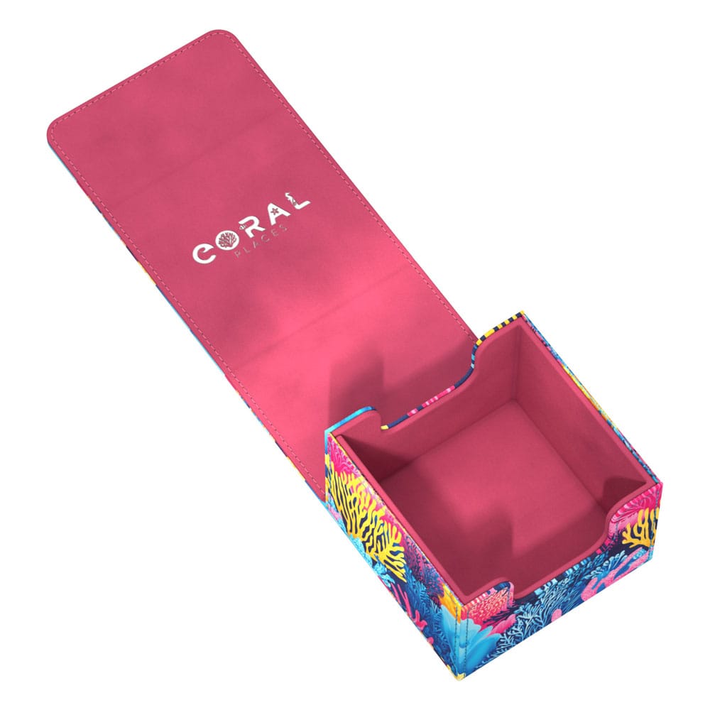 iDive into flourishing underwater worlds with Ultimate Guard's Coral Places Sidewinders! The sustainable deck boxes are made from 52% recycled materials and, in addition to the durable Xenoskin surface, have a strong magnetic closure and a high-quality microfibre inner lining. With a capacity of 133 double-sleeved cards*, it's the perfect MTG deck box for your Commander deck with extra space for tokens! The plastic-free packaging is also made entirely from recycled paper and cellulose-based film.